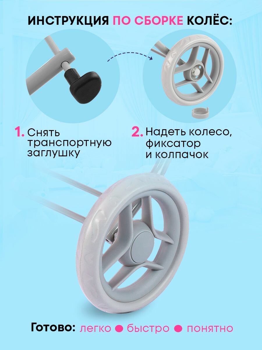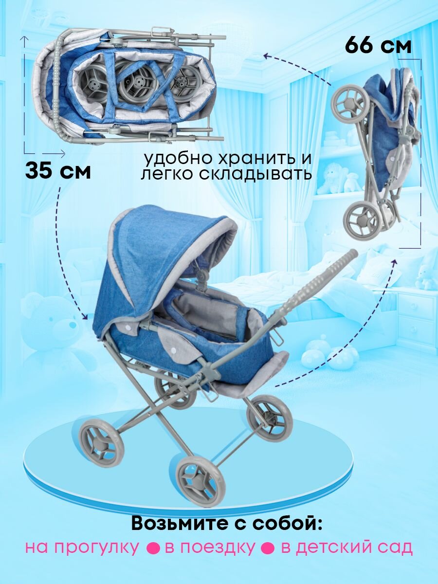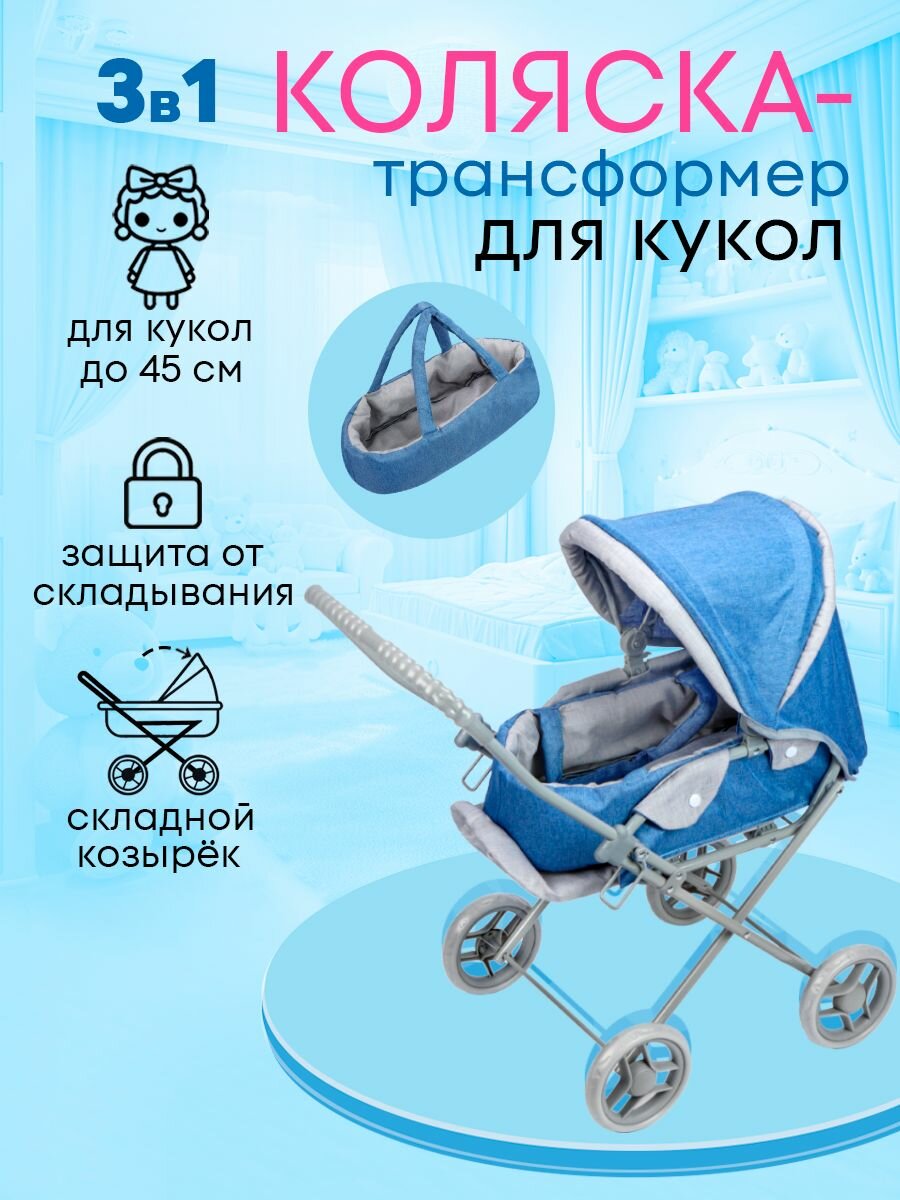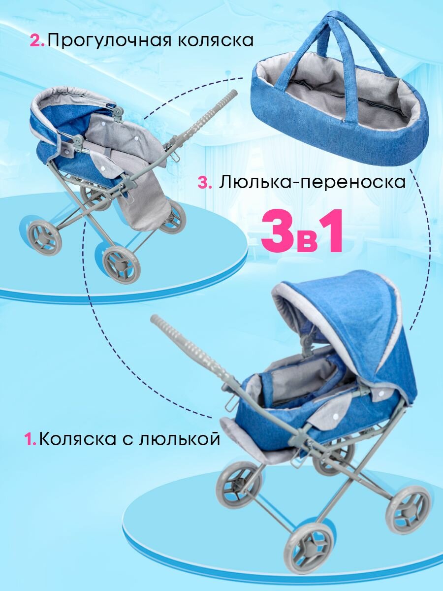 Коляска детская для кукол до 45 см со съемной люлькой. 3в1 размер 66х36х66см. Подарок для девочек 3+ Артикул 9391-C интересное: