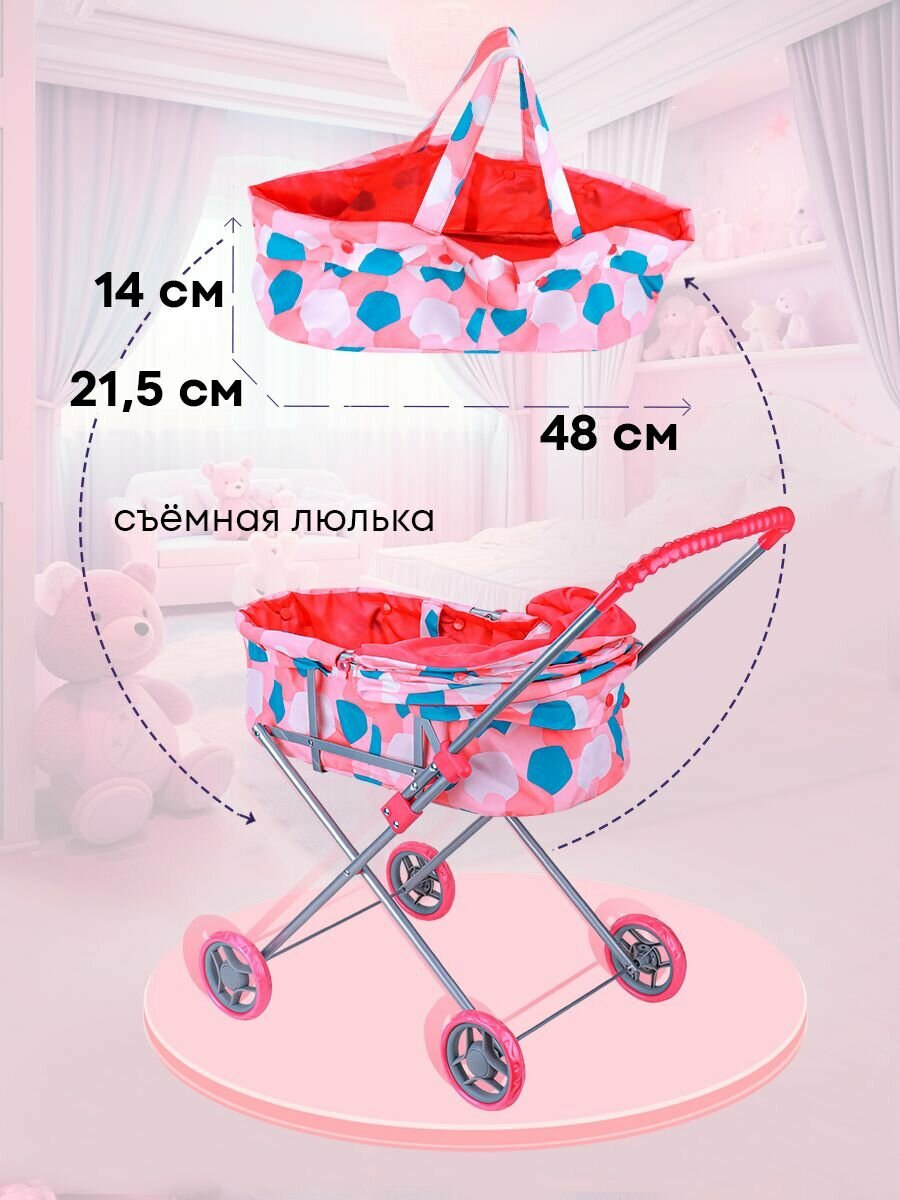 Коляска складная металлическая для кукол до 45 см. Размеры 63,5х36х71см. Подарок для девочек 3+ интересное: