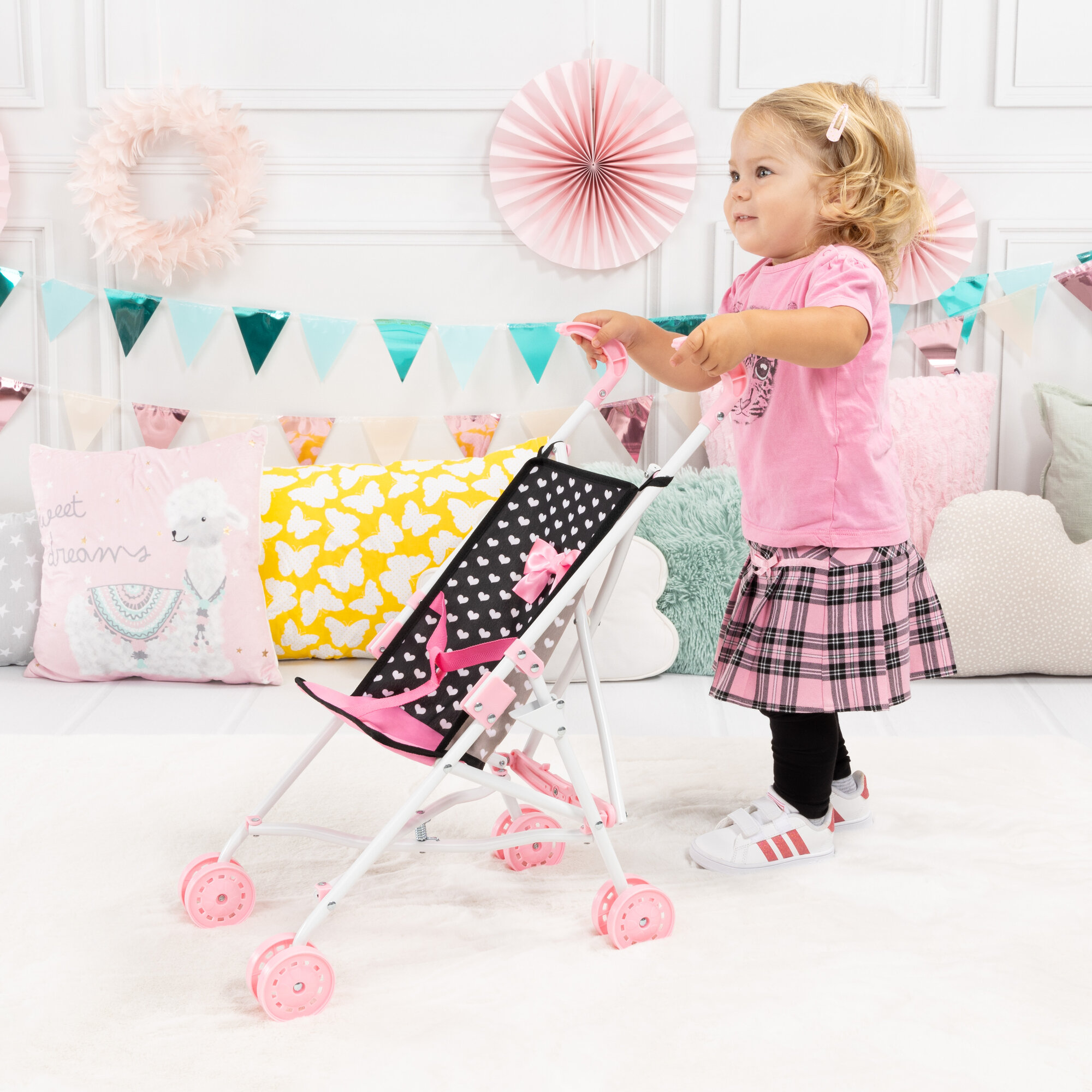 Купить Коляска Dolls Buggy с бантиком черно-розовая