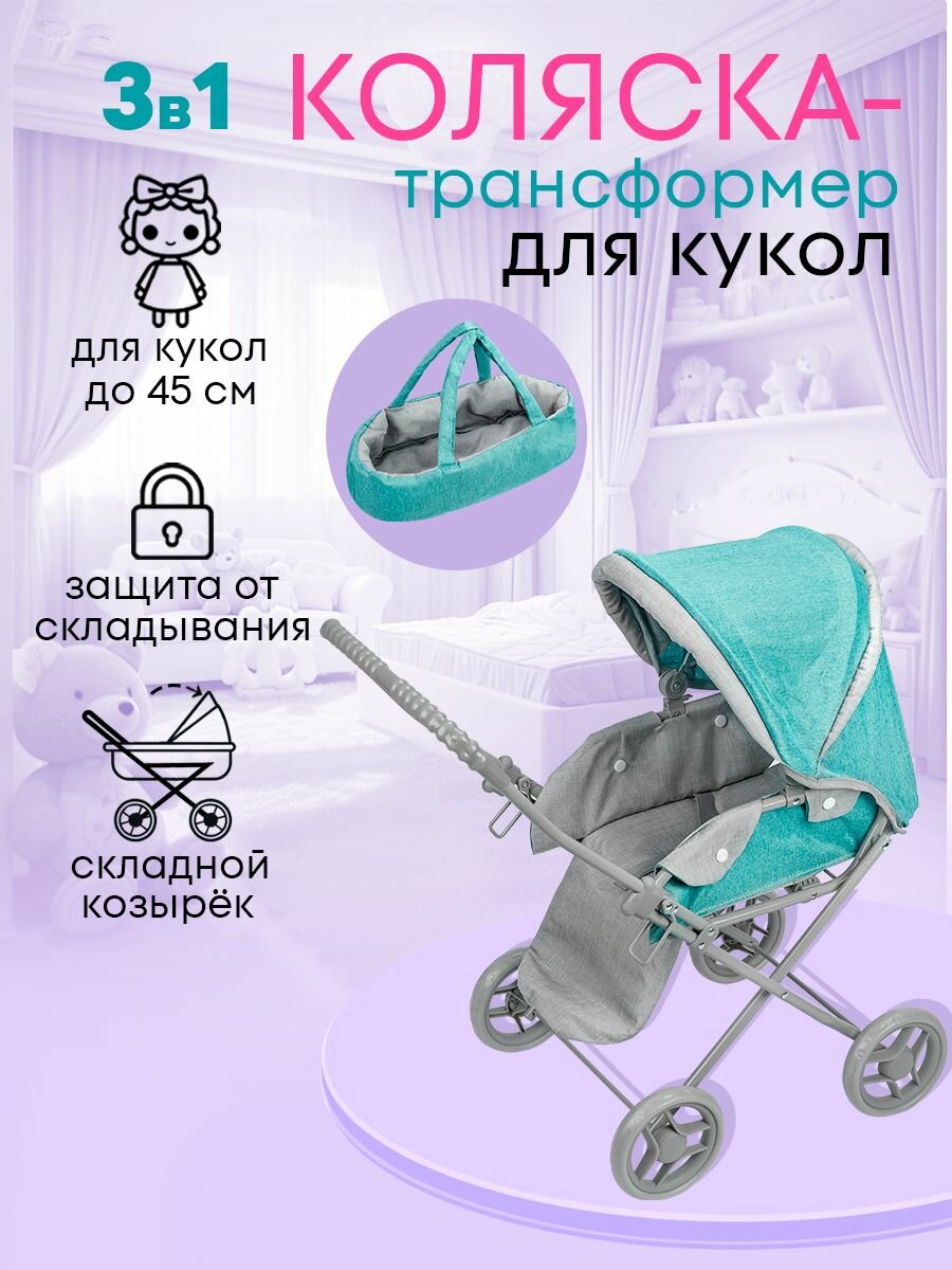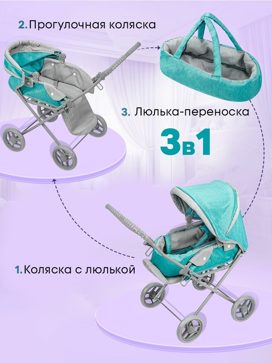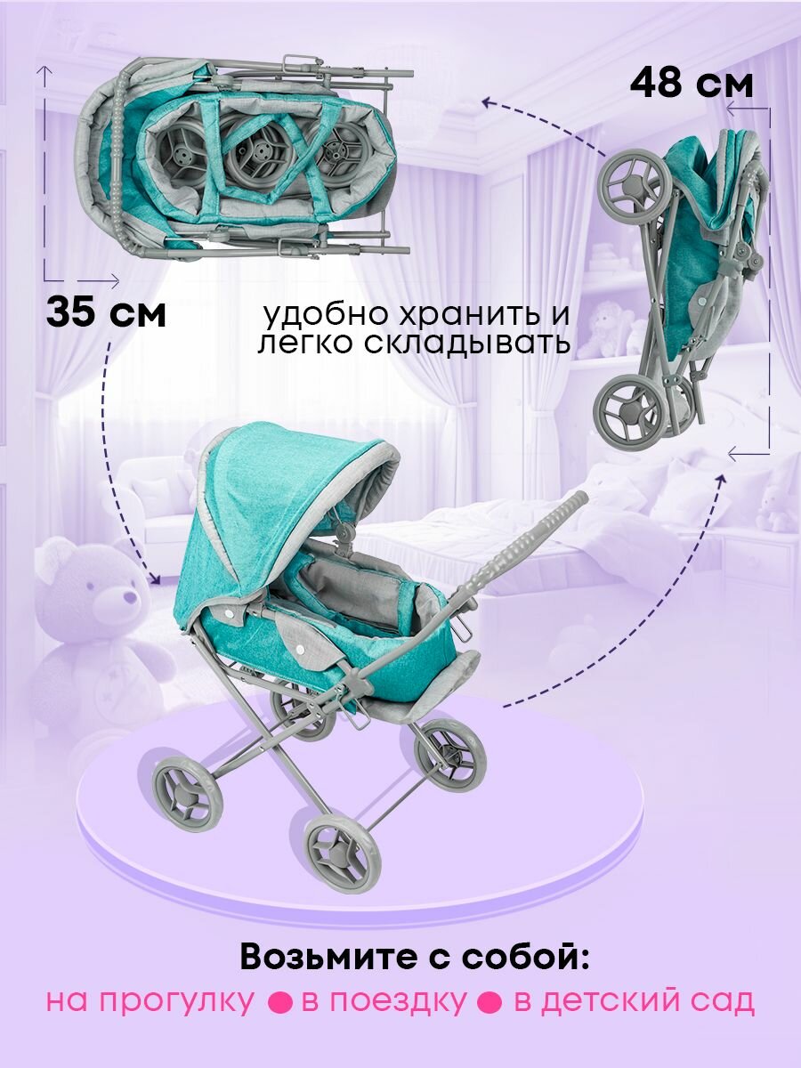 Коляска-трансформер для кукол до 45 см с люлькой, складная, размер 61х35х66 см. Подарок для девочек 3+ Артикул 9391A интересное: