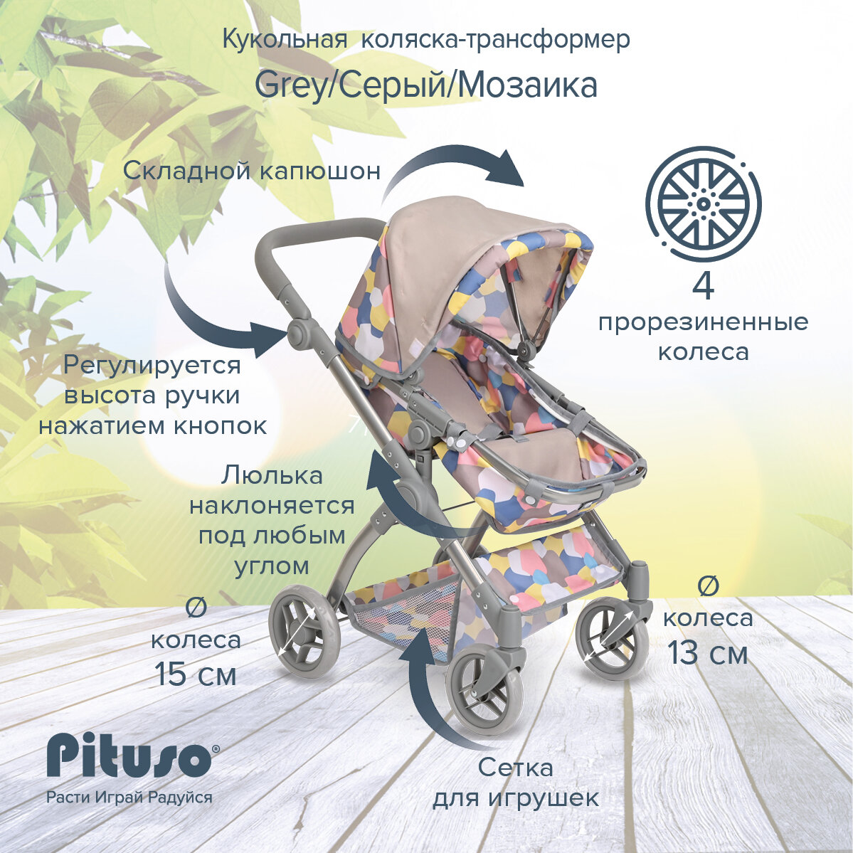 Игрушечная коляска для куклы Pituso коляска-трансформер с корзиной для мелочей, 68.5х40х80 см, серый/мозайка интересное: