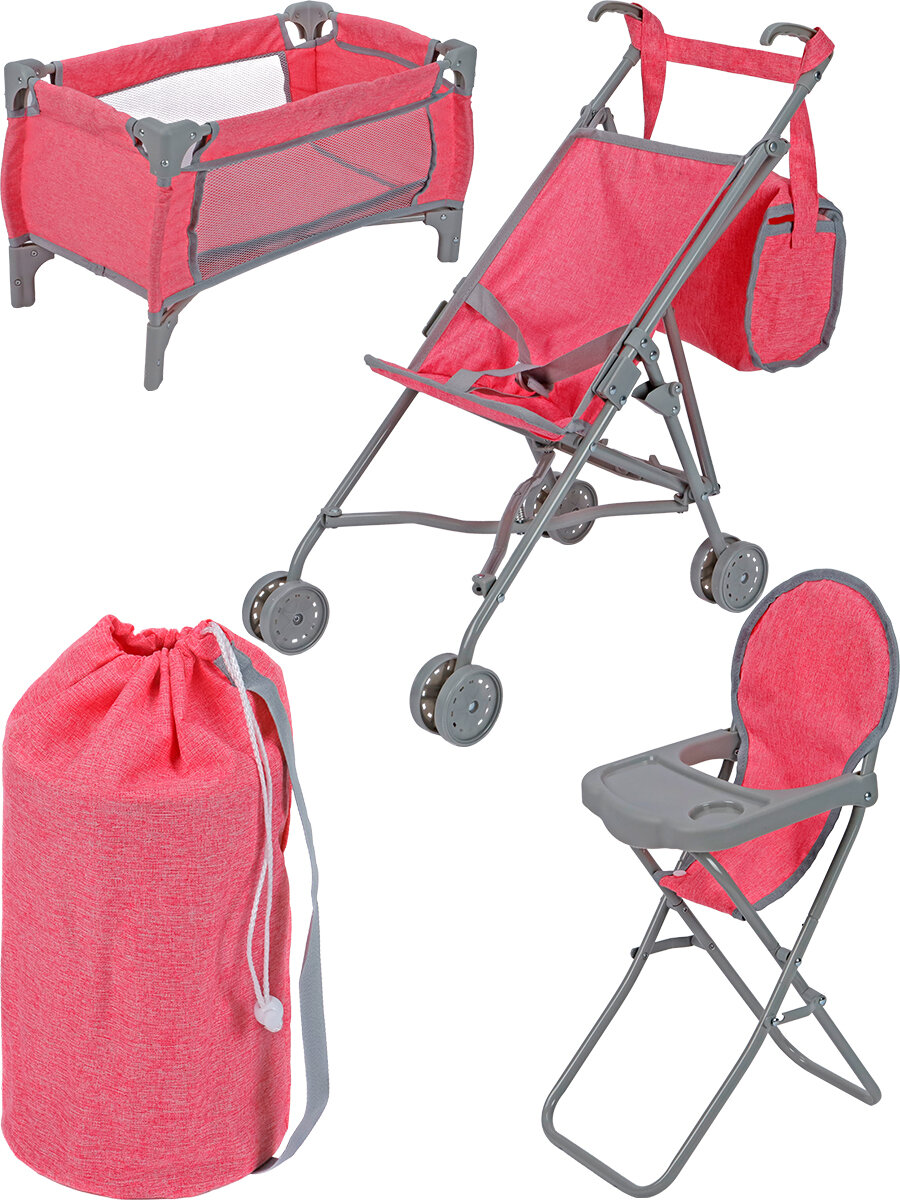 Купить Игровой набор 5в1 для кукол до 50 см (коляска, стульчик, манеж, сумка, мешок для хранения) Подарок для девочек. Артикул 9001-A