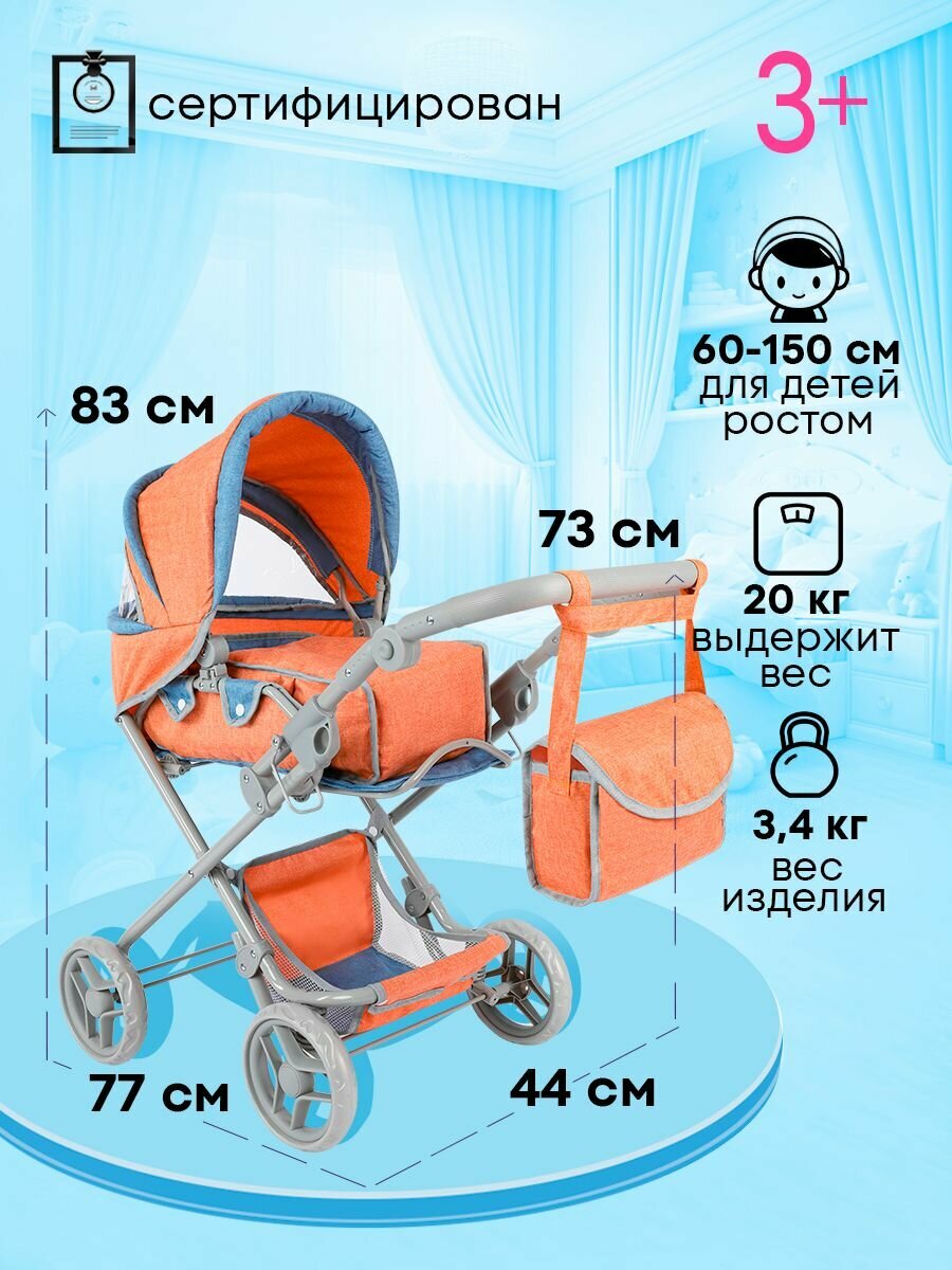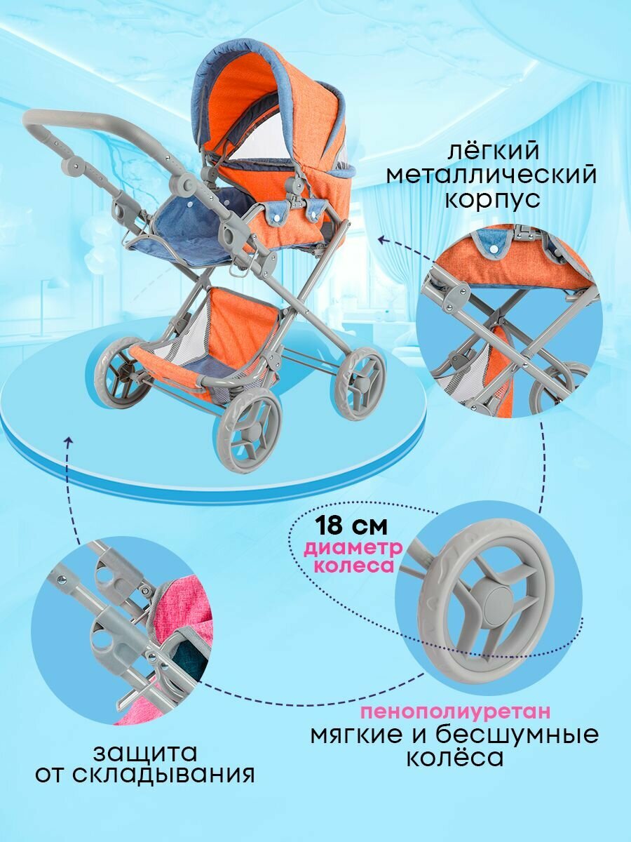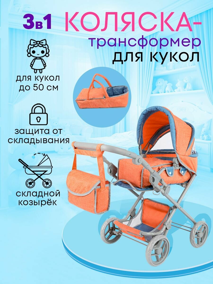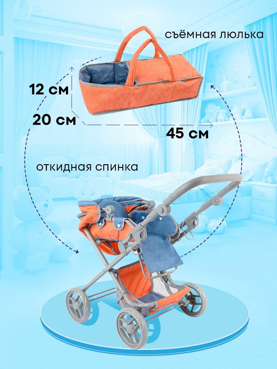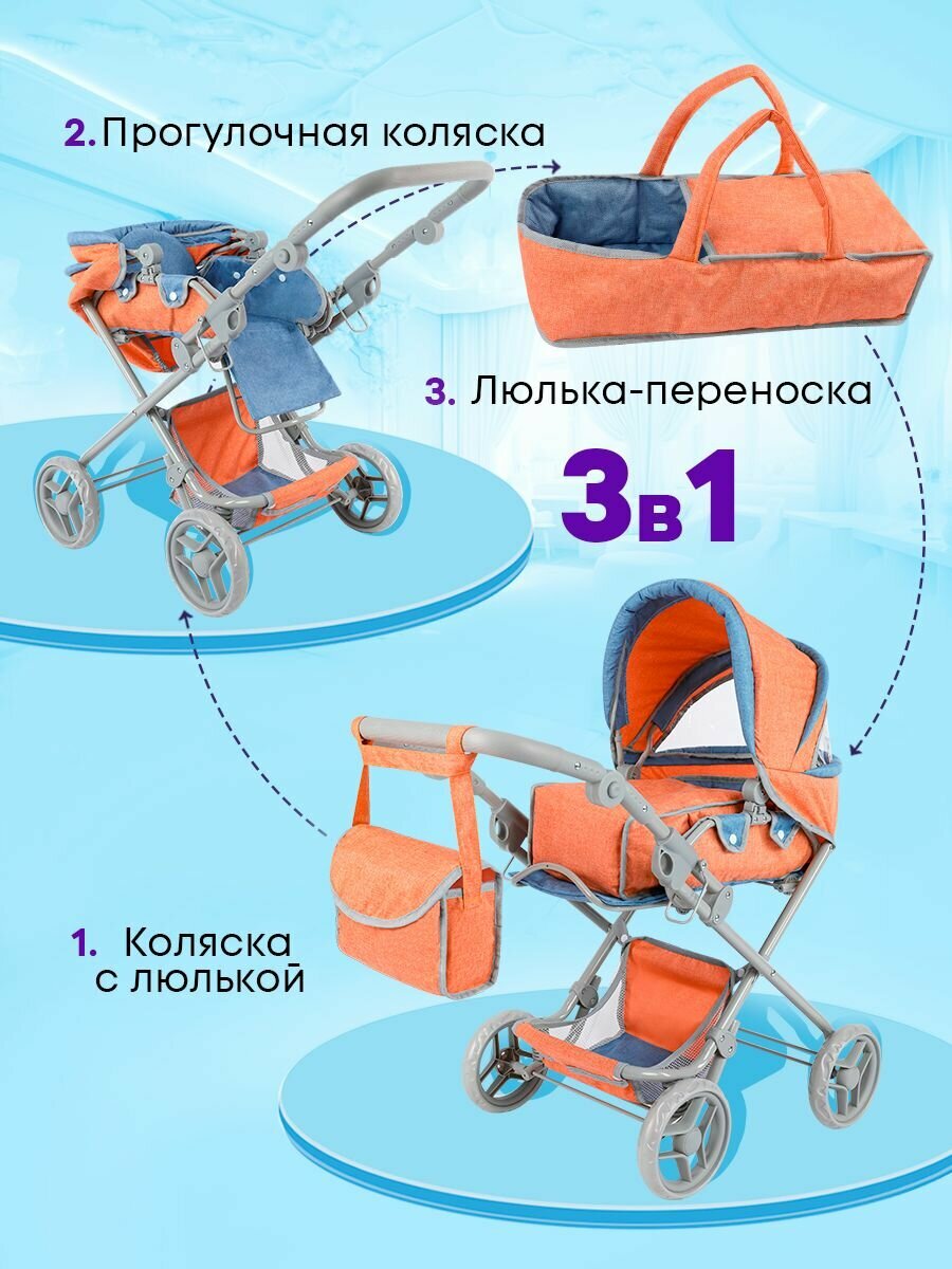 Коляска для кукол до 50 см с люлькой 3в1 размеры 77х44х83см. Подарок для девочек 3+ Артикул 9333-B интересное: