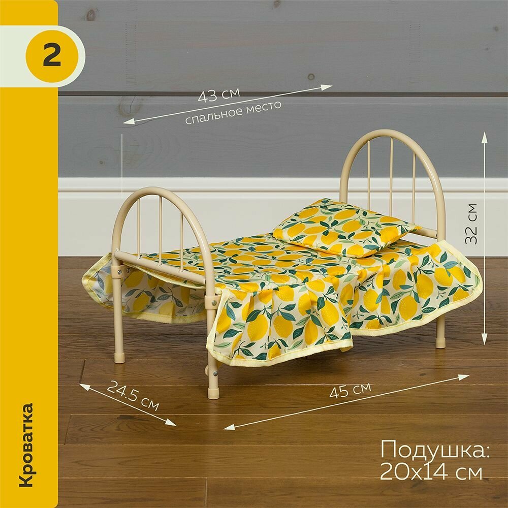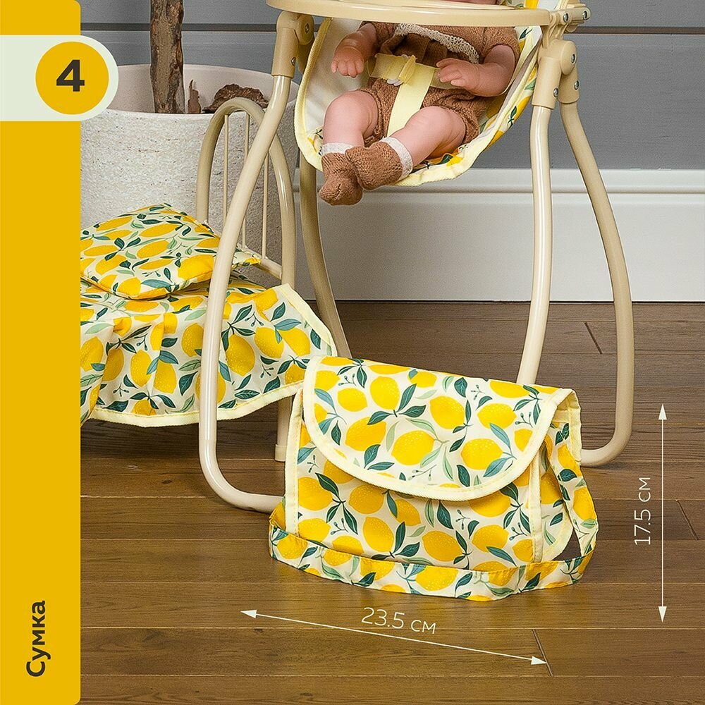 Игровой набор 4 в 1: коляска, сумка, стульчик, кроватка для кукол, лимоны интересное: