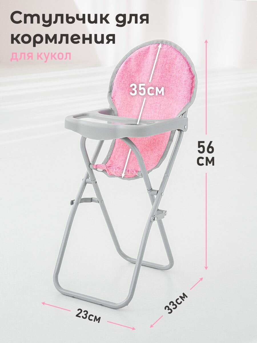 Купить Игровой набор 5 в 1: коляска, сумка, стульчик для кормления, кроватка для кукол в чехле, розовый