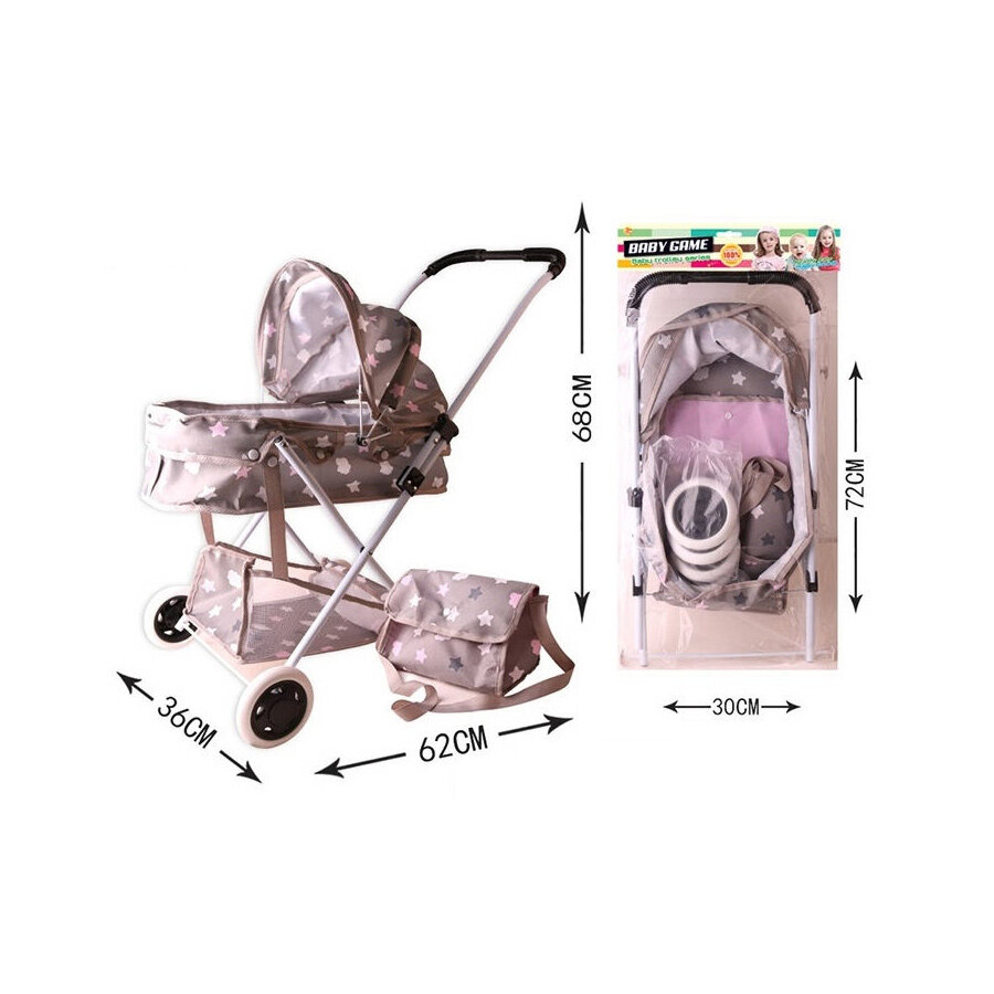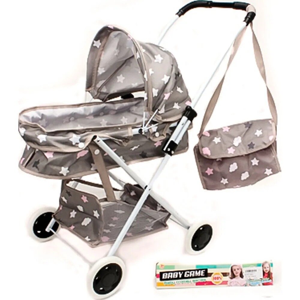Коляска-люлька для кукол Серое звездное небо с сумкой и корзиной 936B-11 с 3 лет интересное: