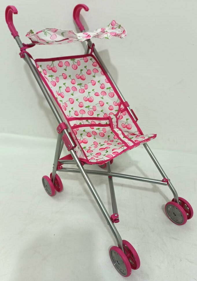 Melobo Коляска-трость для кукол с козырьком белая с вишенками и розовым кантом 9302S/цвeт№3 с 3 лет интересное: