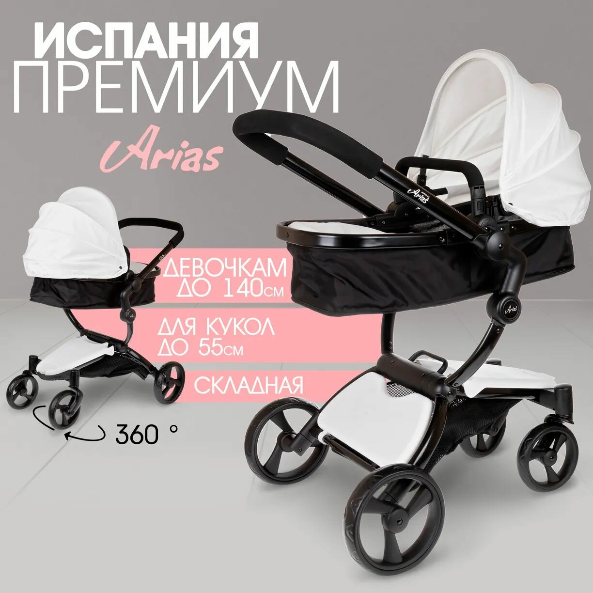 Коляска для кукол детская люлька Arias прогулочная, складная, большая, высокая, с сумкой, для reborn