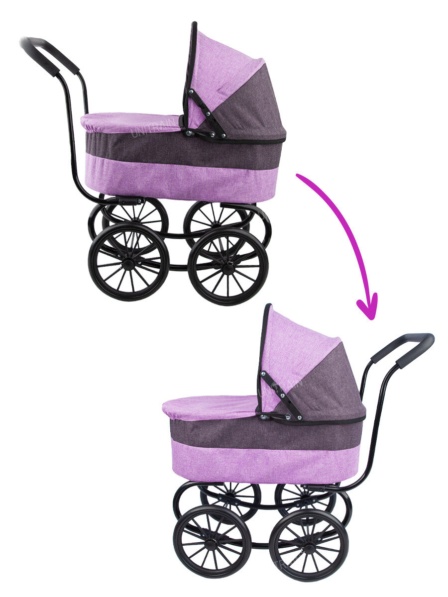 Купить Детская коляска люлька для кукол до 45 см, металлическая, сиренево-серая