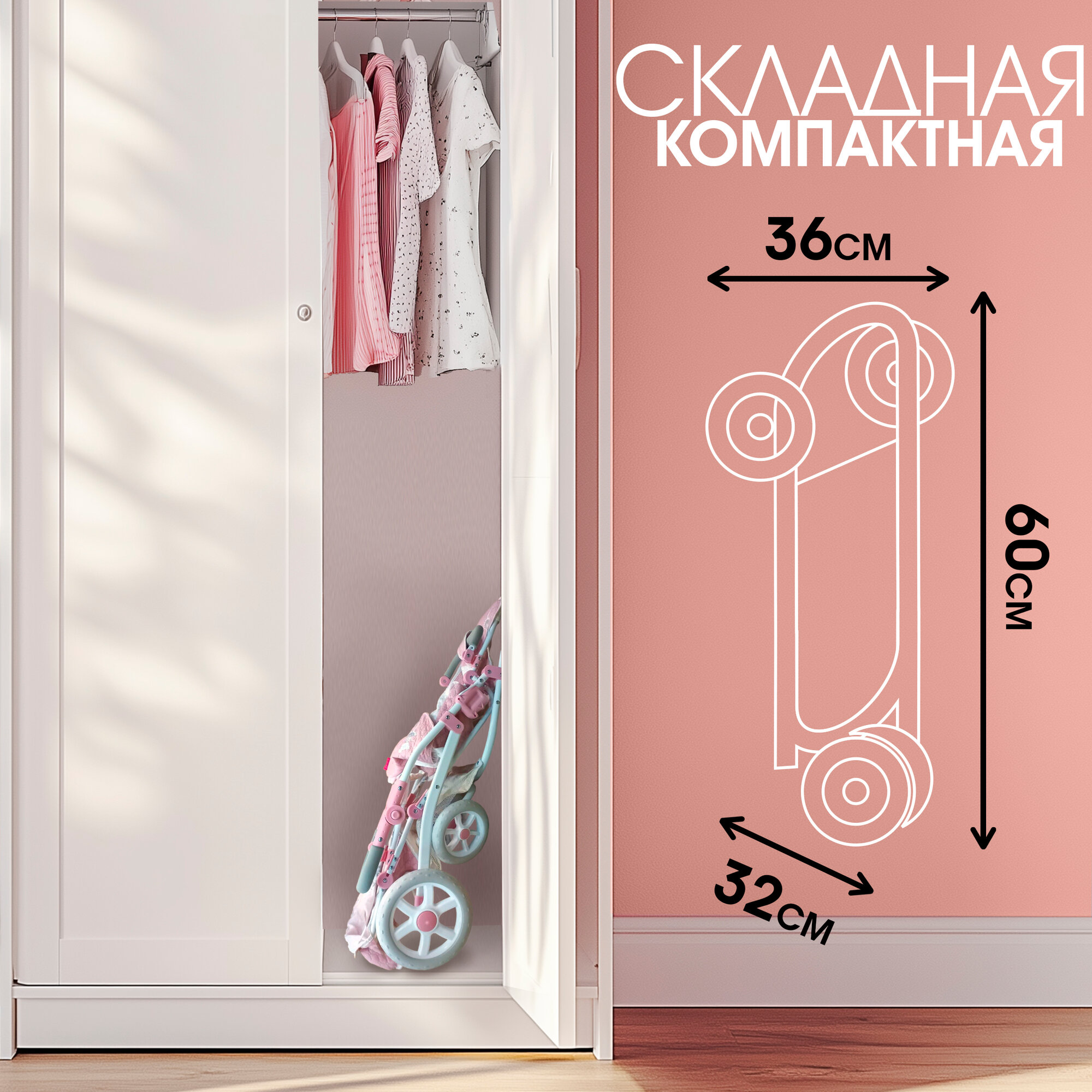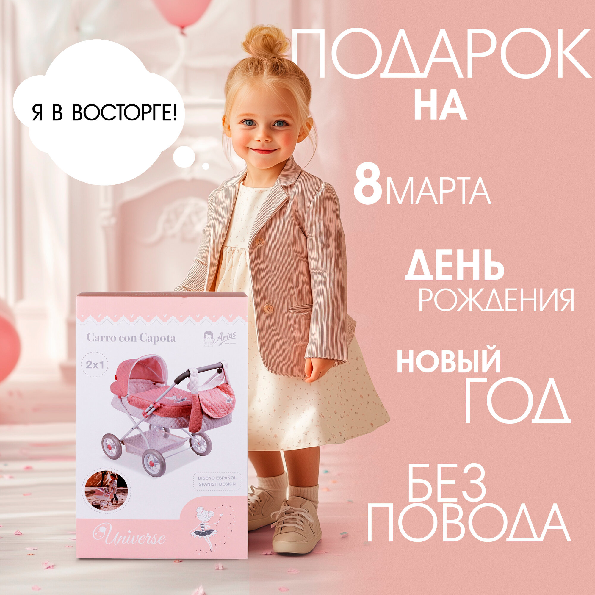 Коляска для кукол детская люлька Arias прогулочная, большая, высокая, с сумкой, для reborn интересное: