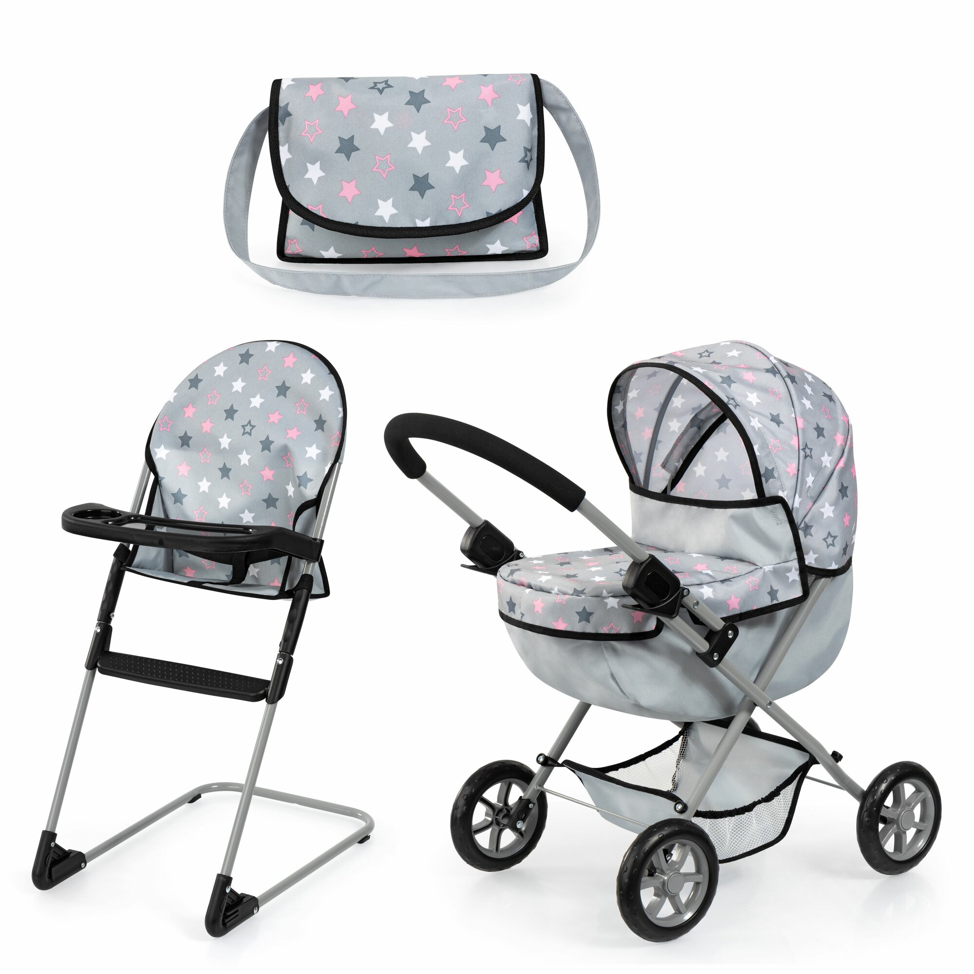 Купить Набор для кукол с коляской и стульчиком для кормления серый
