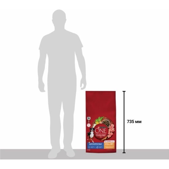 PURINA ONE 1,8 кг сухой корм для взрослых собак средних и крупных пород, с высоким содержанием курицы и с рисом