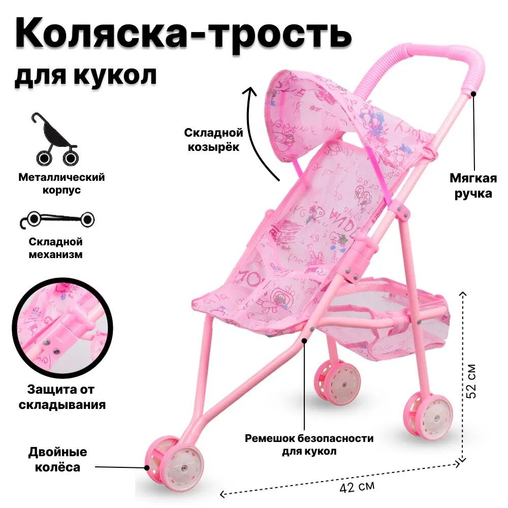 Трехколесная коляска-трость для кукол, розовая интересное: