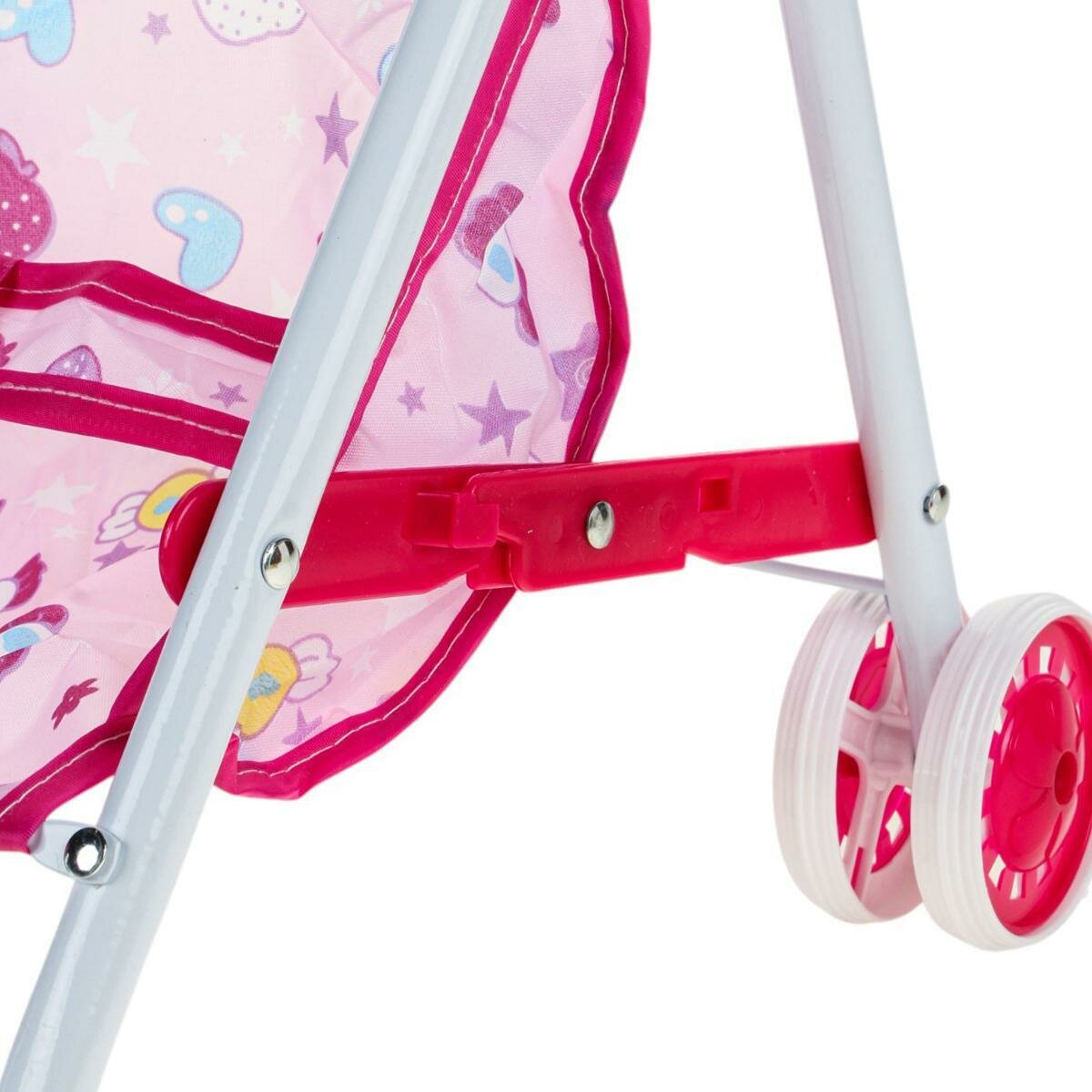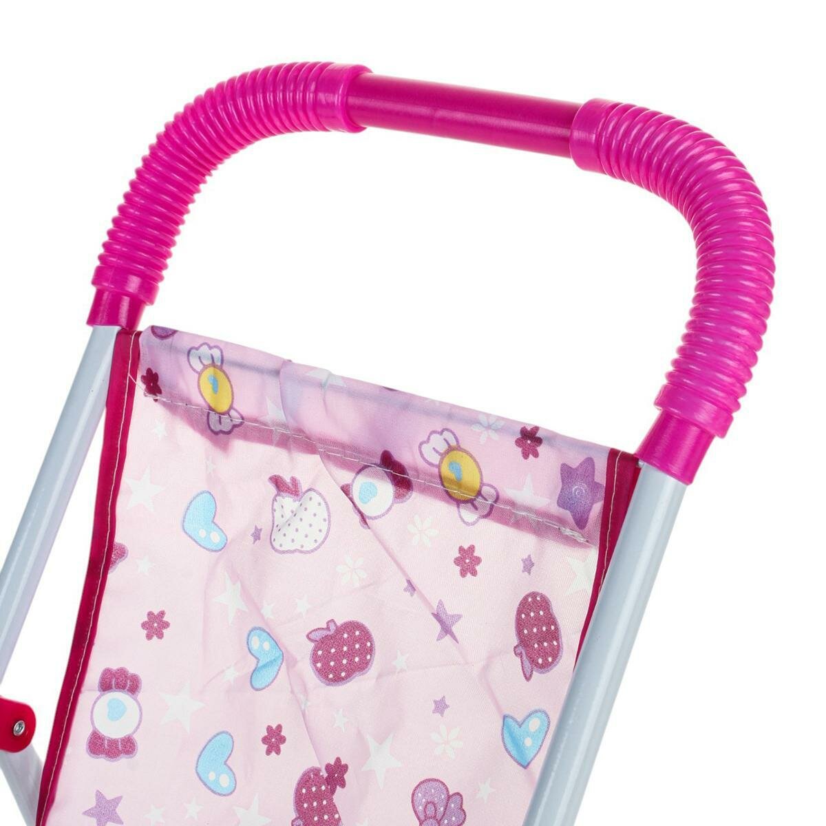| Дополнительная информация | Коляска для куклы с легкой конструкцией, алюминиевая рама, розовая обивка с мультяшными элементами, предназначена для игры с куклами. |