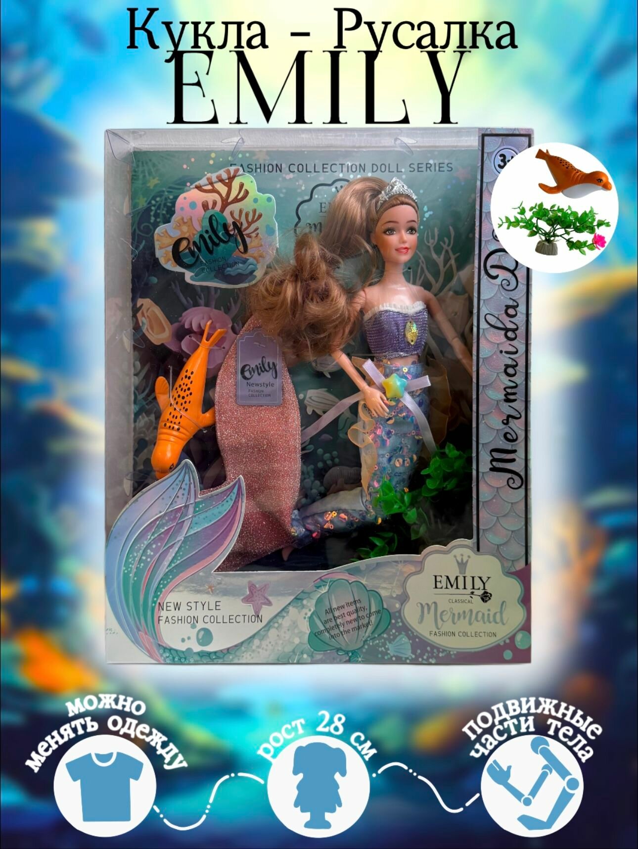 Кукла Эмили русалочка, шарнирная 30см, кукла для девочки интересное: