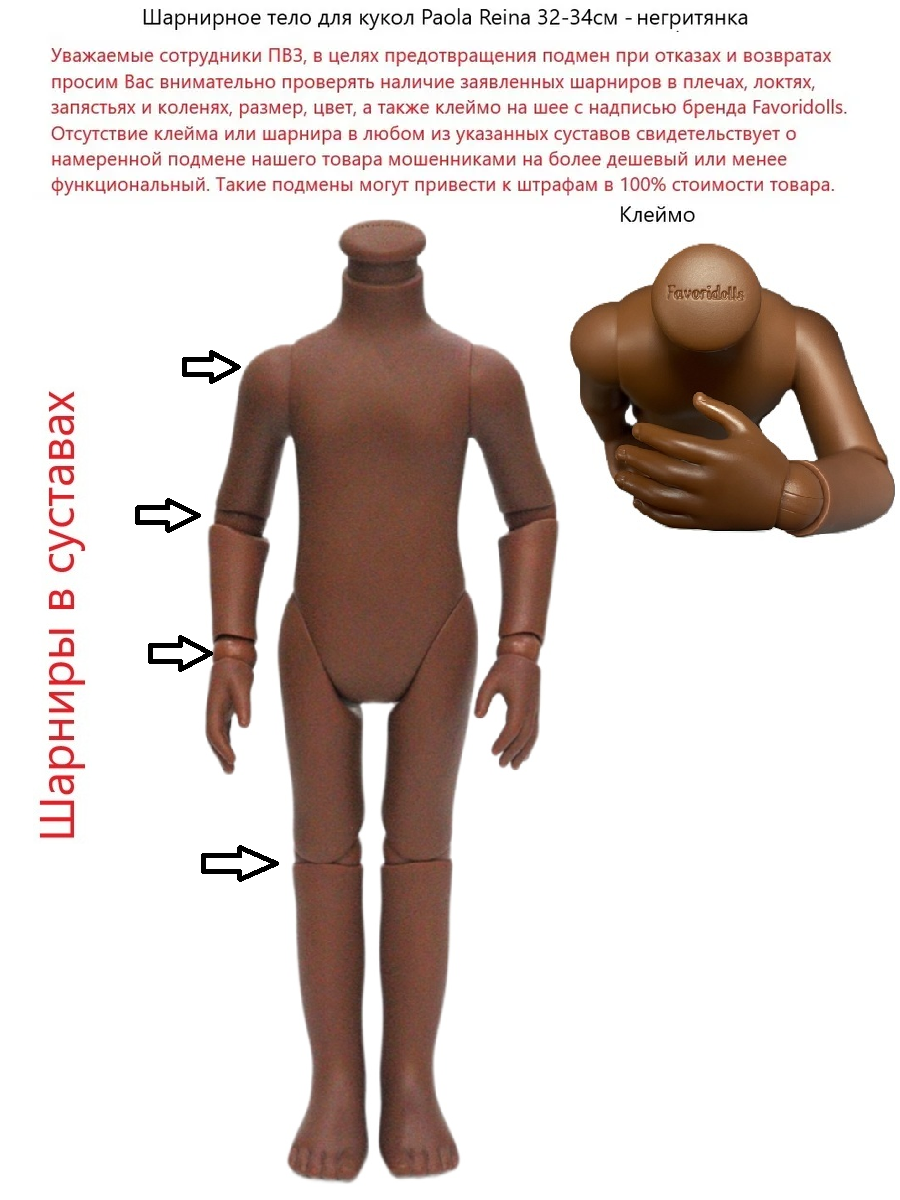 Шарнирное тело F-24 для кукол Paola Reina 32-34 см, Berjuan 35 см, бренд Favoridolls, тёмный скинтон, негритянка интересное: