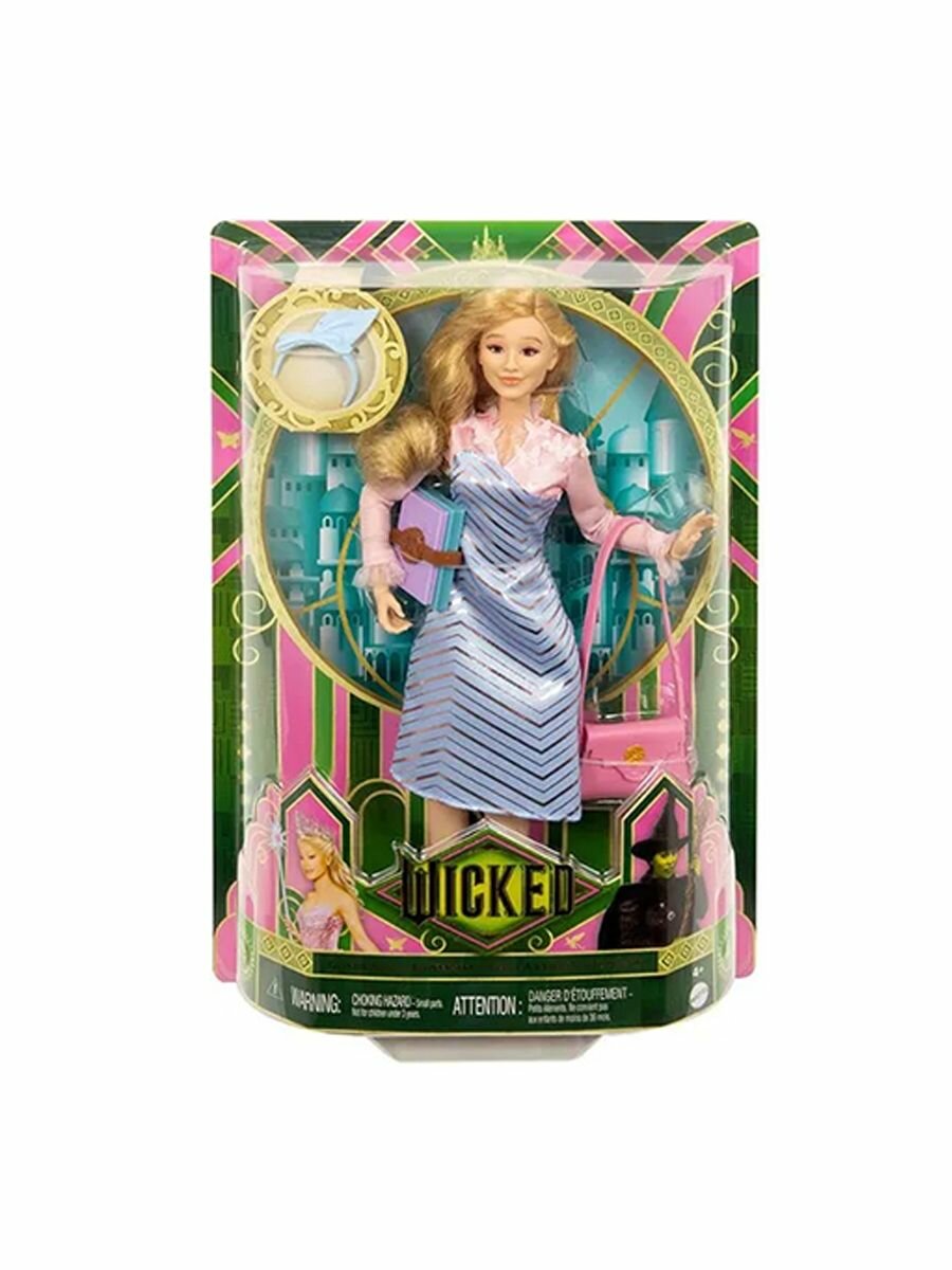 Купить Mattel Barbie Wicked Glinda/Стильная кукла из классического фильма с розовой сумкой, учебником и съемной одеждой