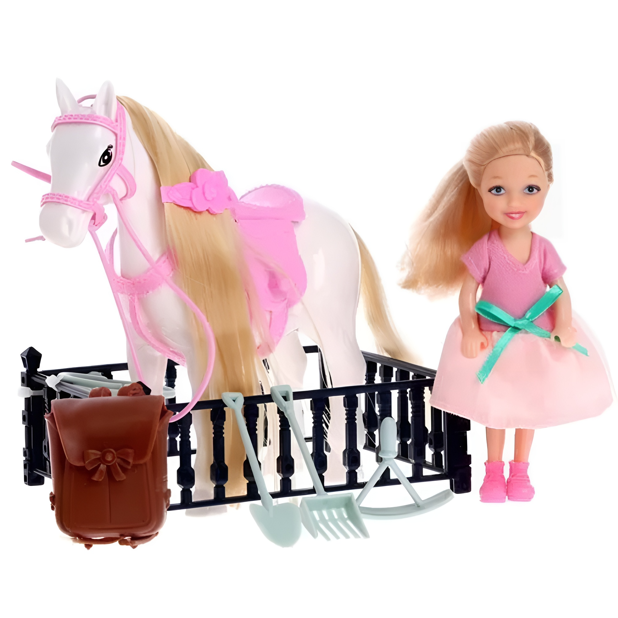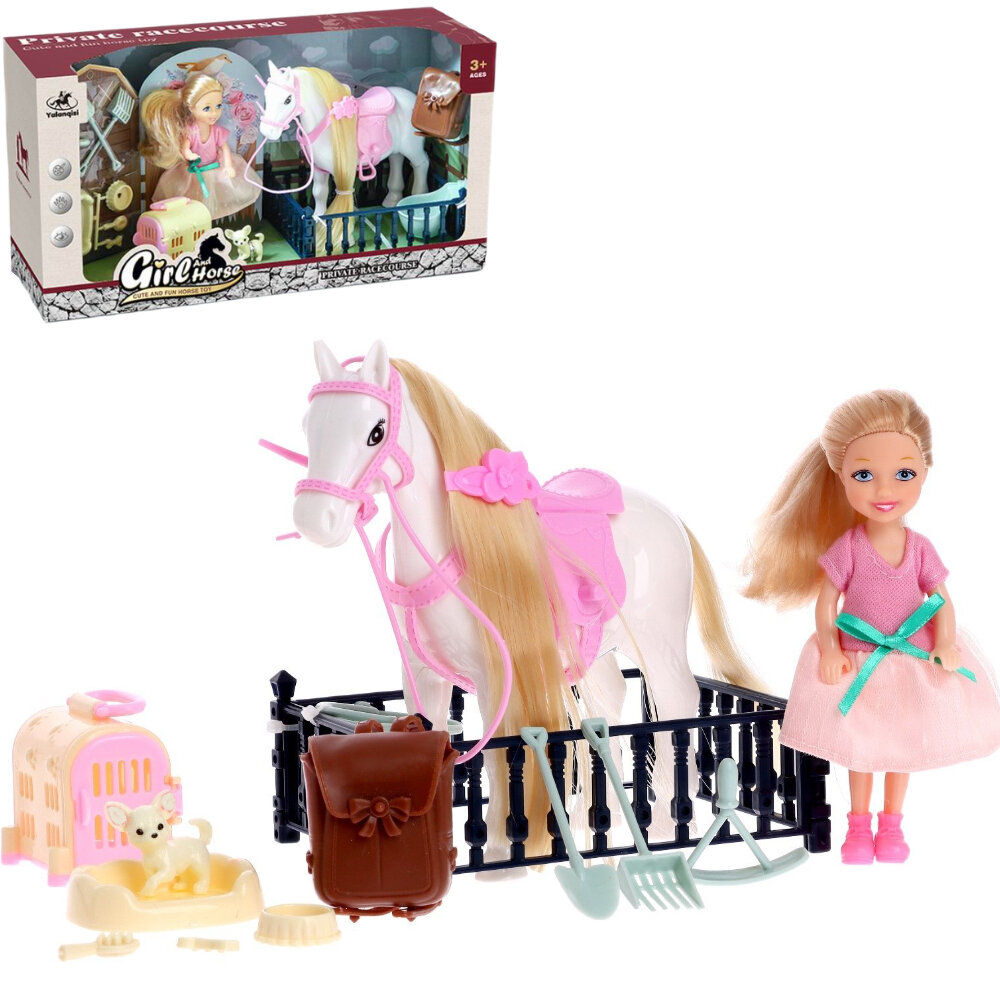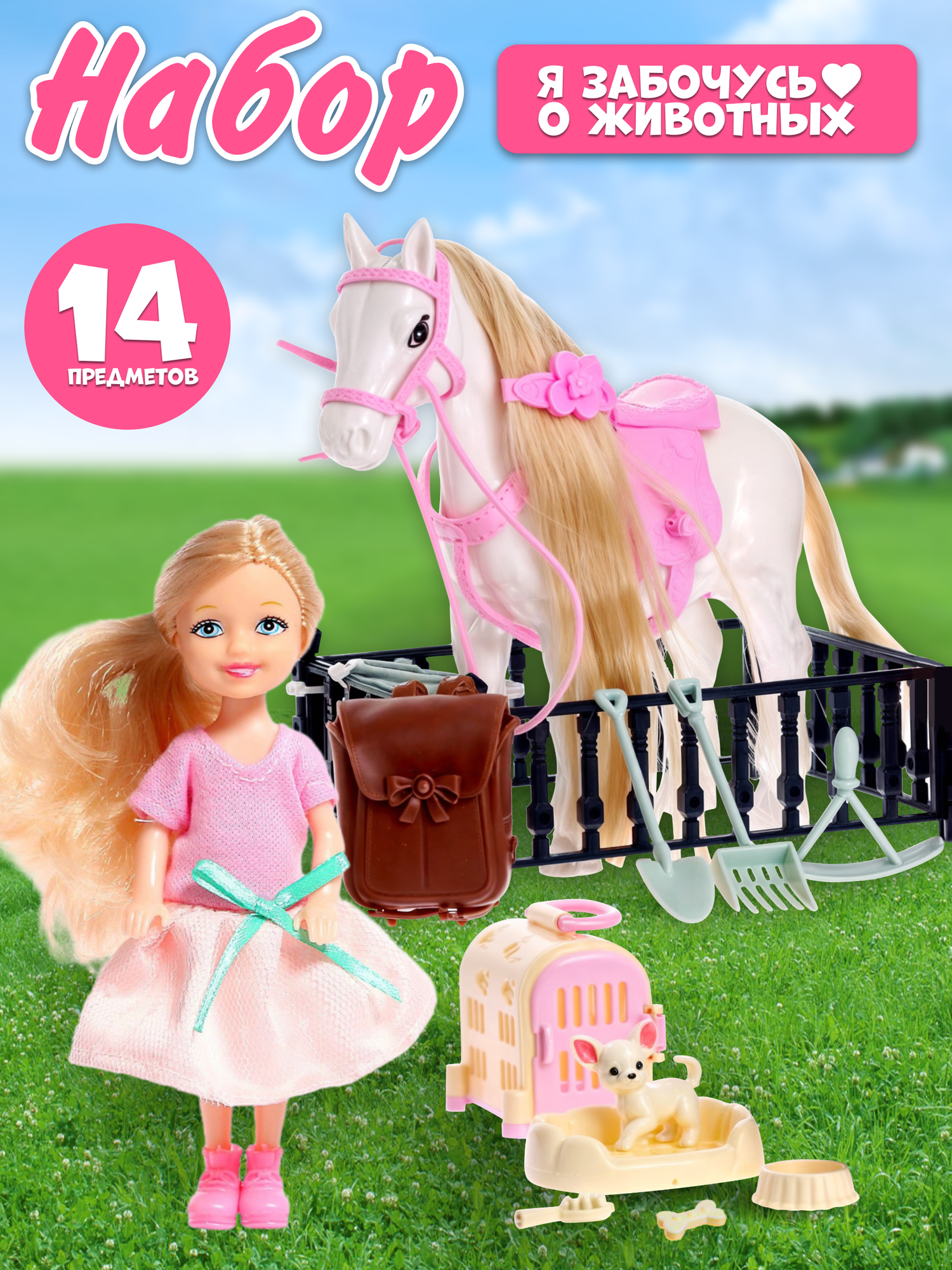Купить Игровой набор кукла 14,5 см с лошадкой и питомцем собакой с аксессуарами, 686-821
