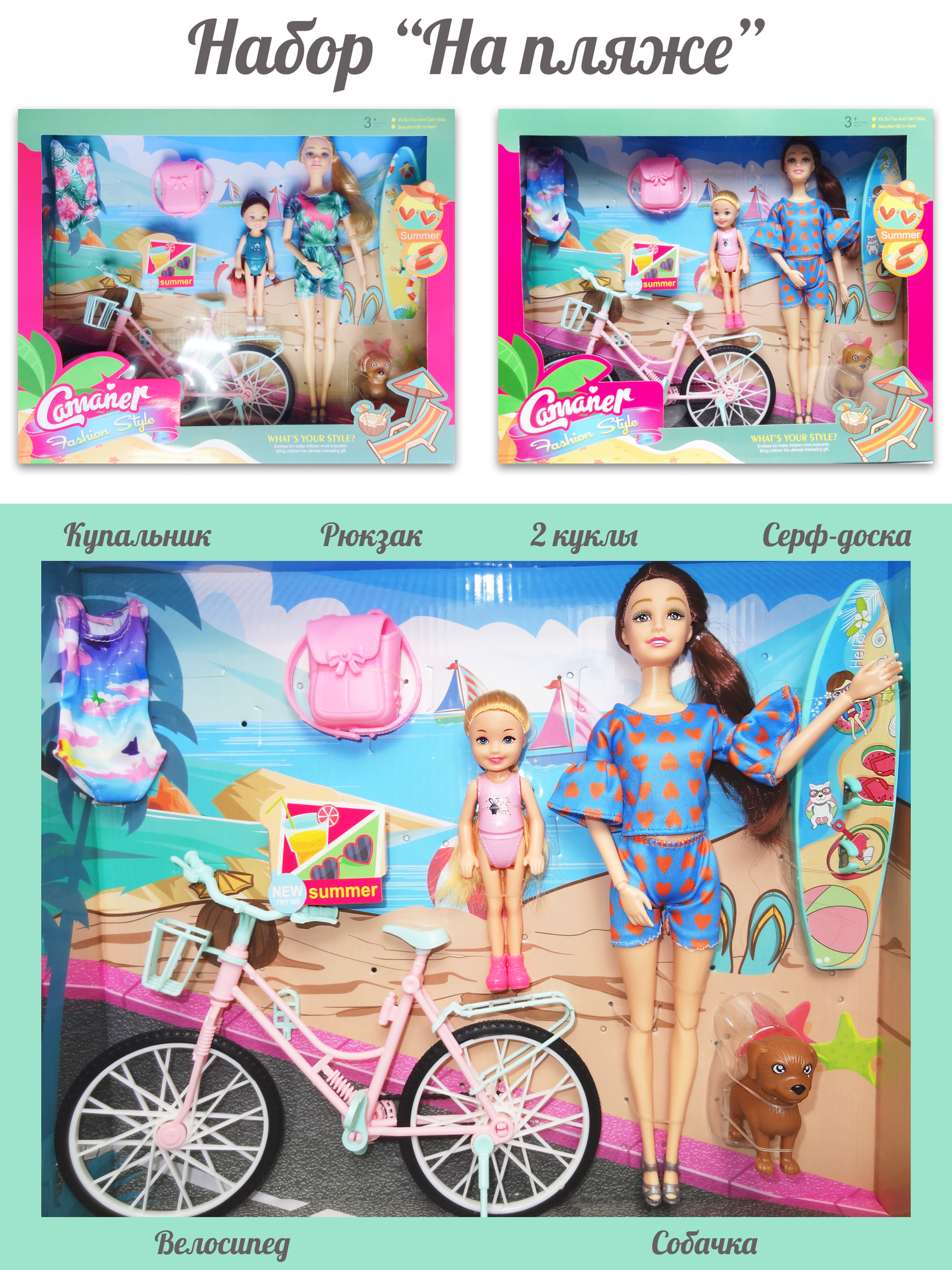 Ниже Вы можете прочитать отзывы на Кукла для девочек шарнирная 29 см на велосипеде с ребенком 14 см, питомцем и аксессуарами для пляжа, ознакомится с подробными характеристиками, посмотреть интересные обзоры и фотографии на Кукла для девочек шарнирная 29 см на велосипеде с ребенком 14 см, питомцем и аксессуарами для пляжа.