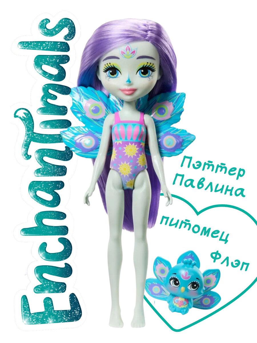 Кукла Mattel Enchantimals HRX79 павлин Пэттер и питомец (без юбочки) Энчантималс интересное: