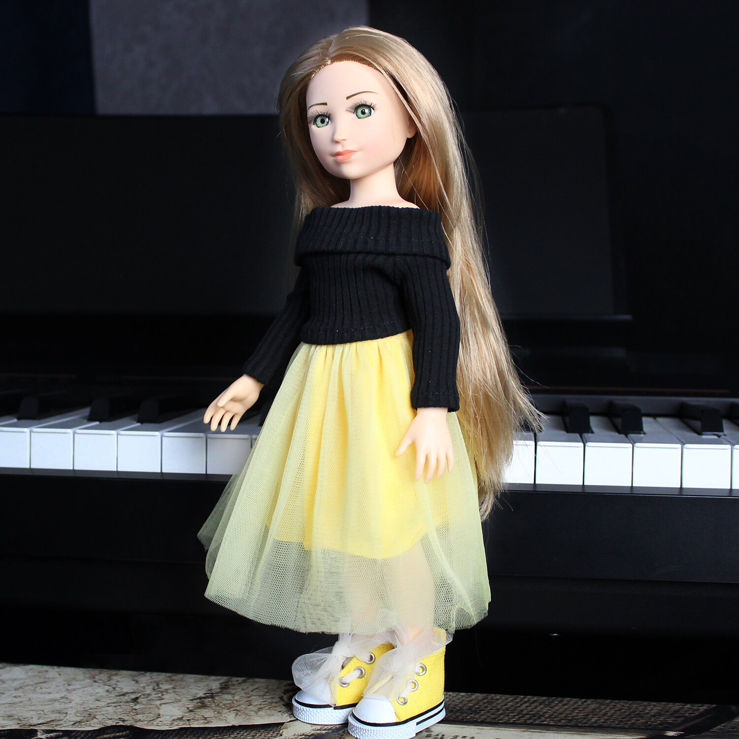 Кукла Дивомир - голубоглазка с длинными волосами, Милена пианистка