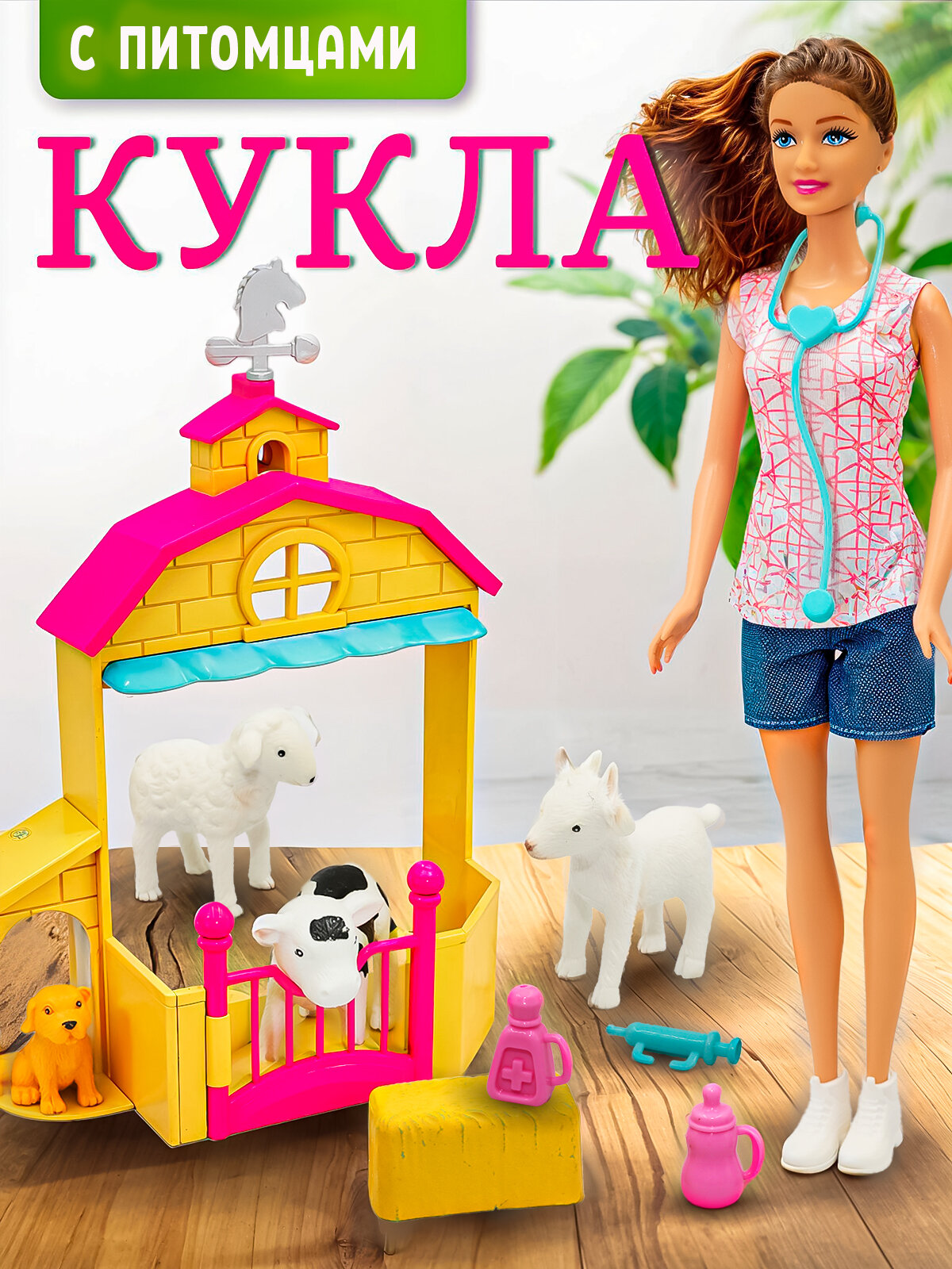 Кукла ветеринар. Игровой набор с домиком для животных и 4-мя питомцами интересное:
