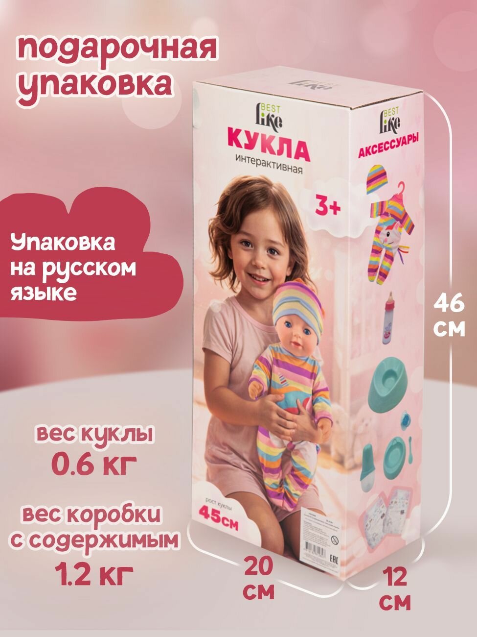 Кукла пупс 45 см, пьет, писает, плачет слезами, с аксессуарами интересное: