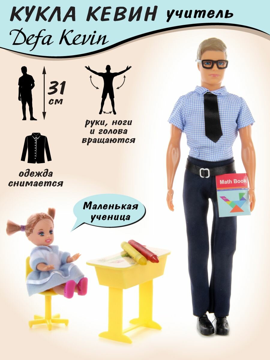 Детская кукла мальчик Кевин учитель с ученицей, 31 см, Veld Co / Куколка кен для барби с одеждой и аксессуарами для девочки интересное: