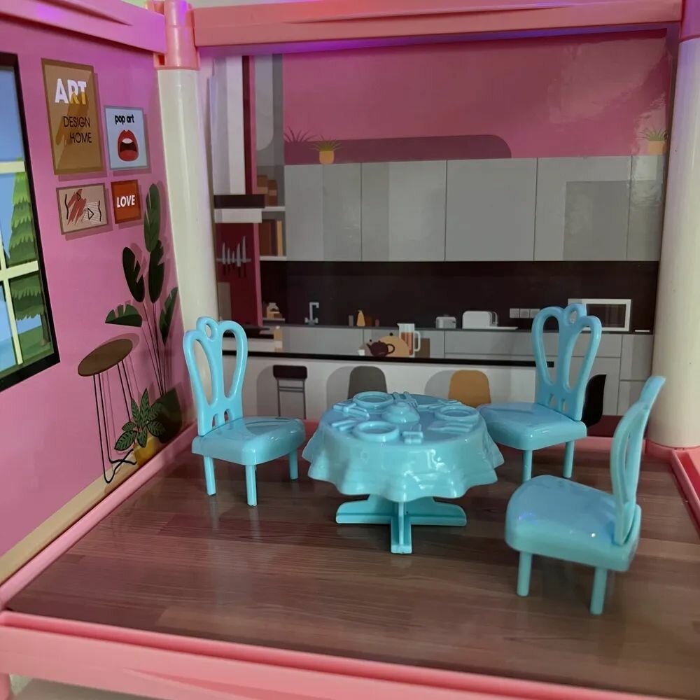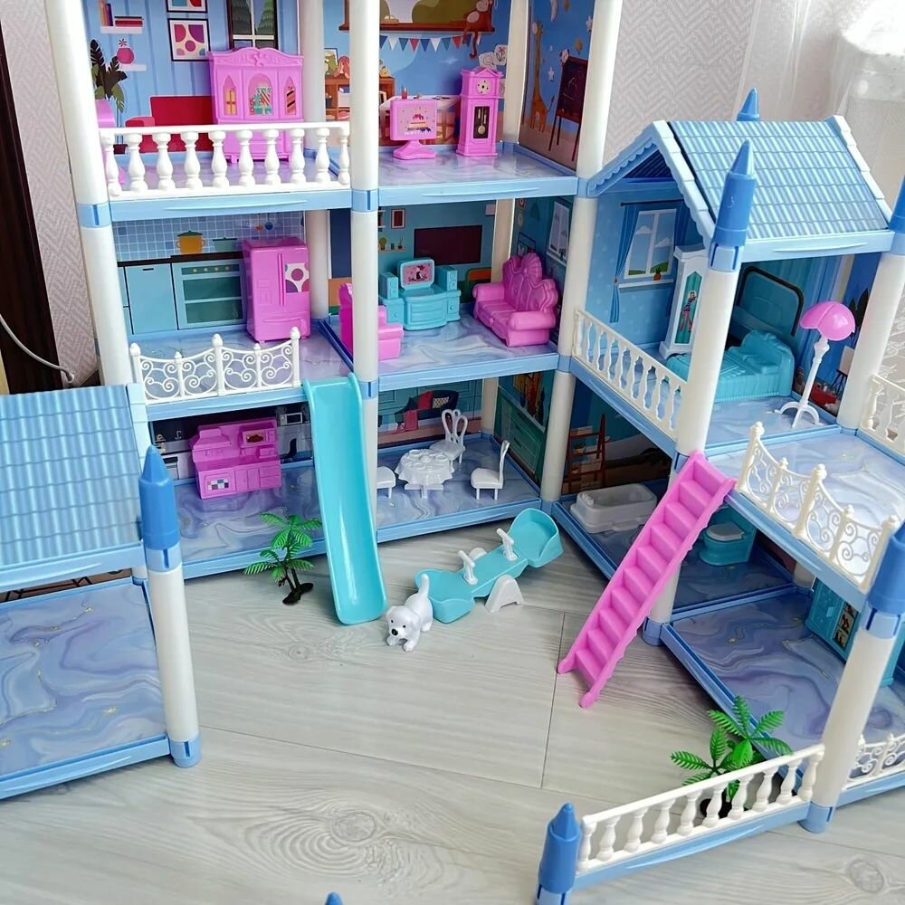 Кукольный домик с мебелью и куклами, игрушечный дом для кукол состоит из 3х этажей и 7 комнат