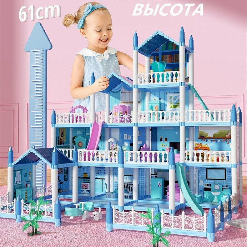 Кукольный домик с мебелью и куклами, игрушечный дом для кукол состоит из 3х этажей и 7 комнат