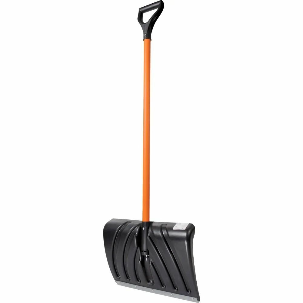 Лопата для снега пластик, 450х335х1330 мм, черенок металлический, V-ручка, Цикл, Крепыш, 7023-00