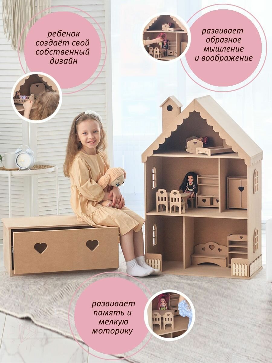 Кукольный домик деревянный Вероника для кукол до 32 см без окрашивания интересное:
