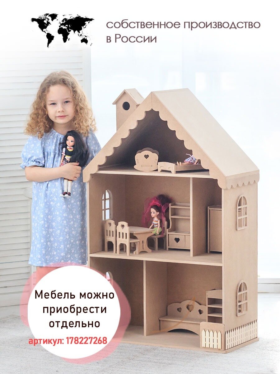 Купить Кукольный домик деревянный Вероника для кукол до 32 см без окрашивания