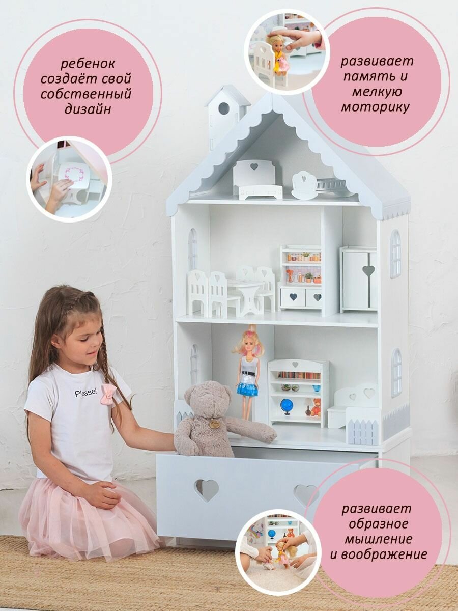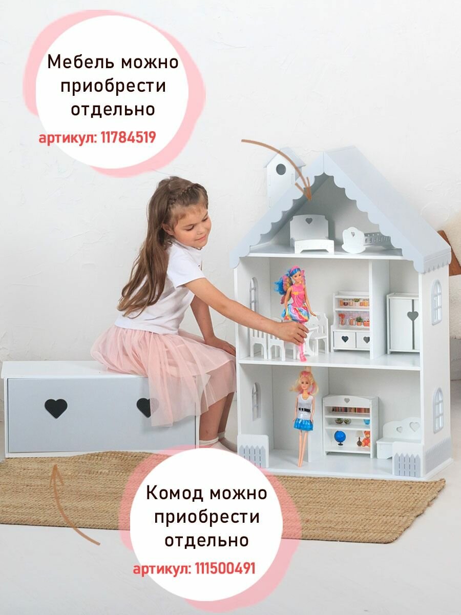 Купить Кукольный домик деревянный Вероника для кукол до 32 см Бело-серый