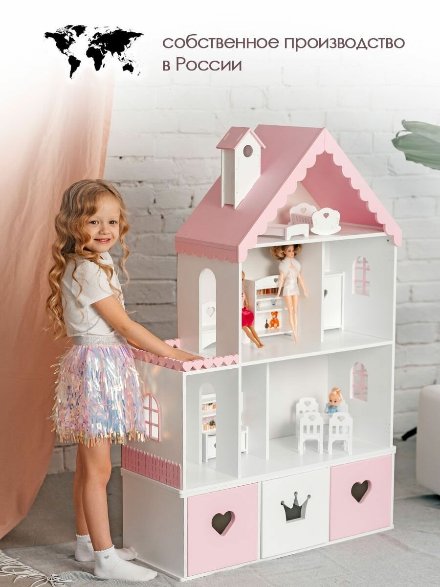 Купить Кукольный домик деревянный с комодом Стефания для кукол до 32 см бело-розовый