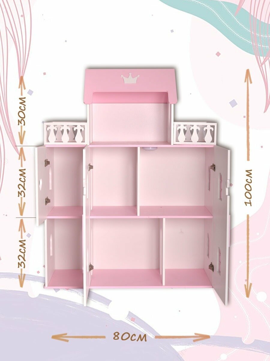 Кукольный домик деревянный Балерина для кукол до 32 см бело-розовый интересное: