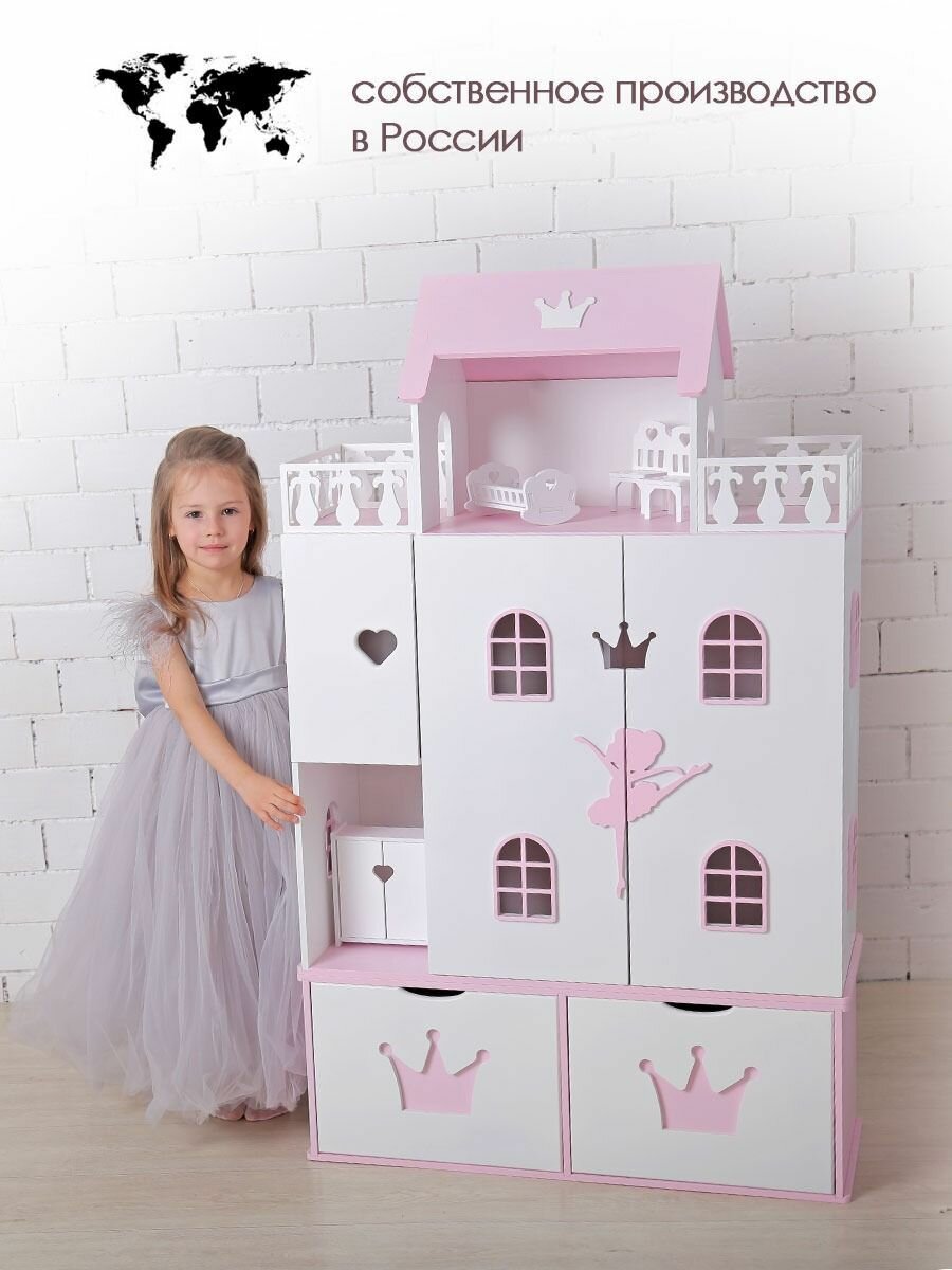 Купить Кукольный домик деревянный Балерина для кукол до 32 см бело-розовый