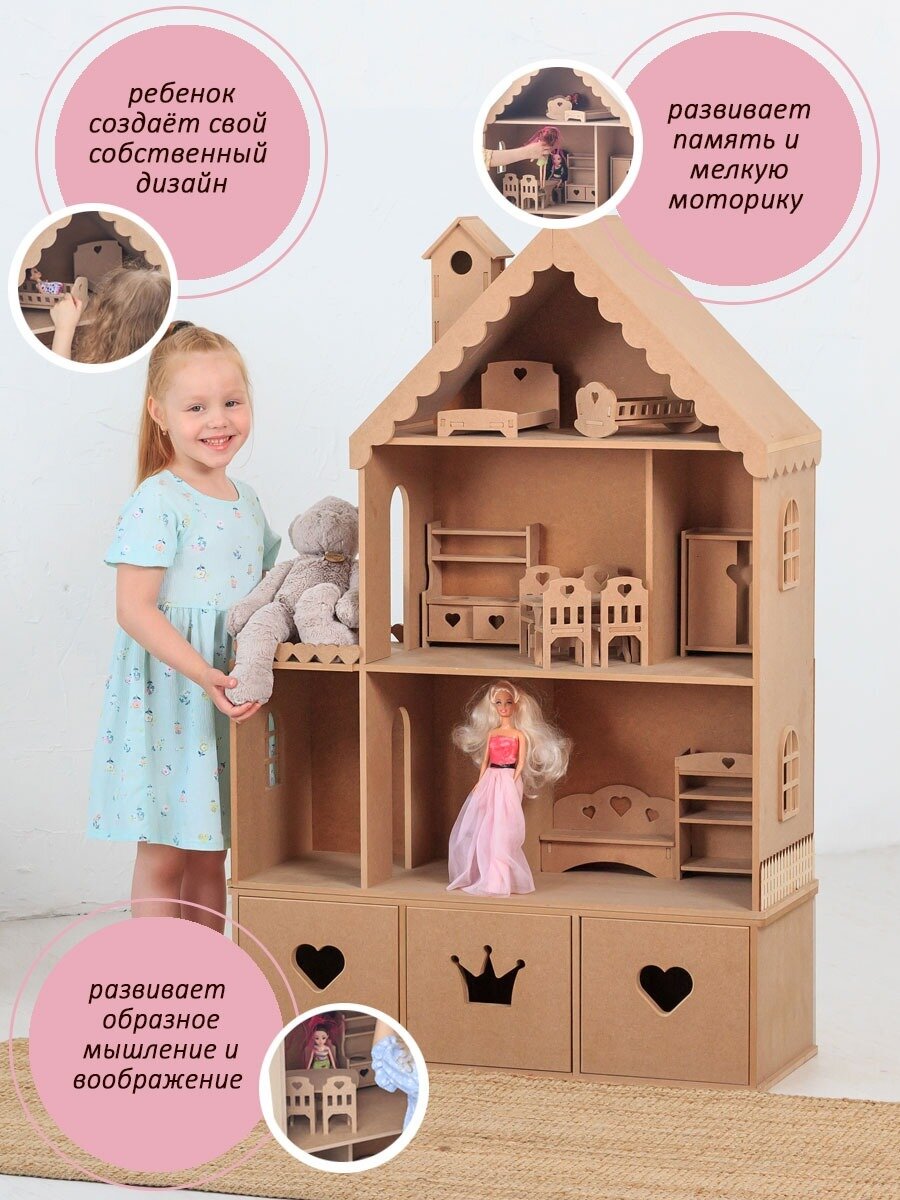 Кукольный домик деревянный с комодом Стефания для кукол до 32 см без окрашивания интересное:
