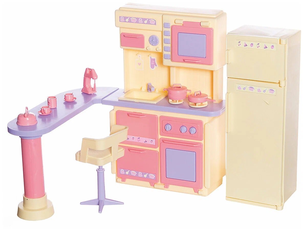 Набор кухонной мебели Огонек "Маленькая принцесса" С-1438о, с посудой, игрушками, интересное: