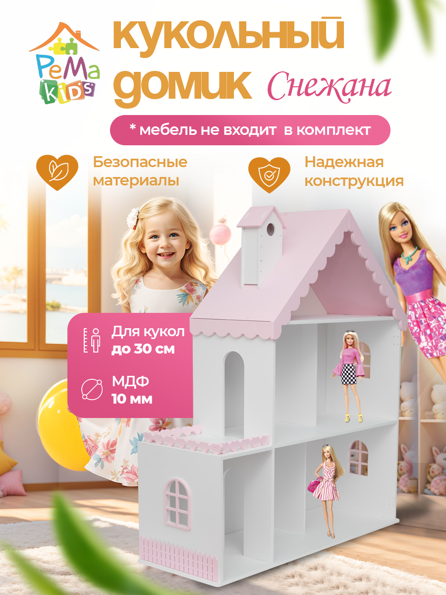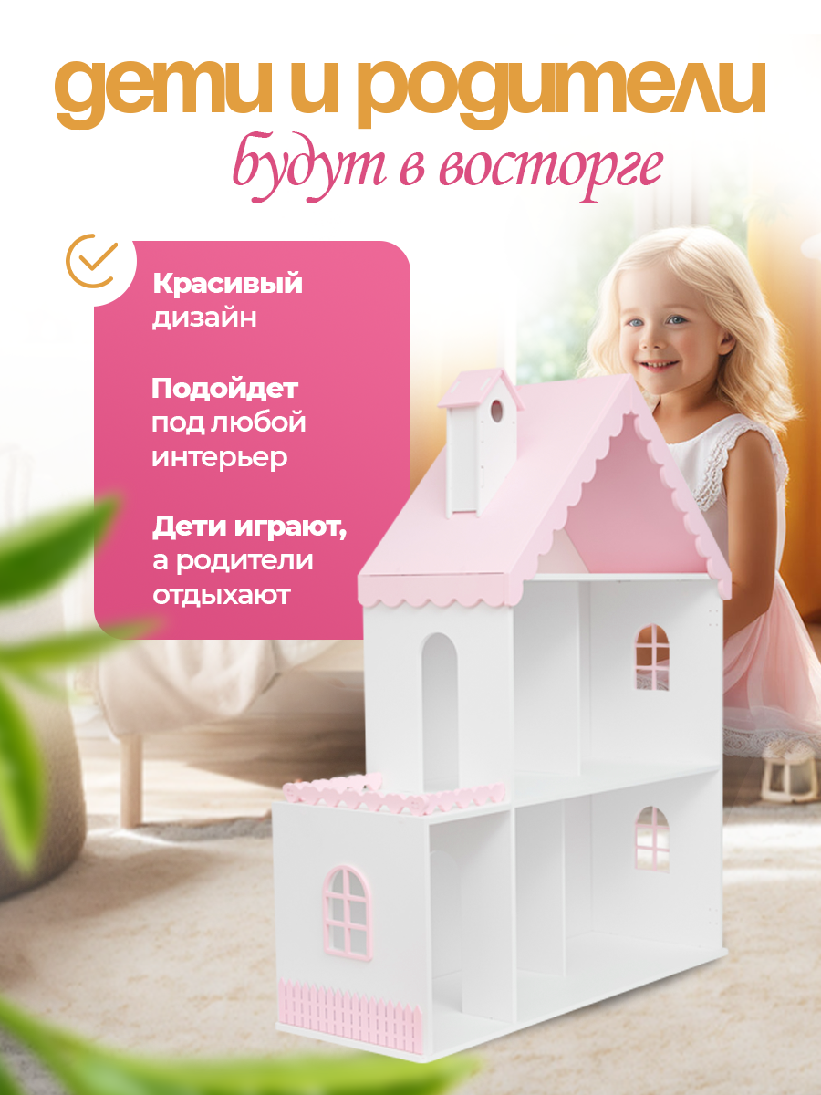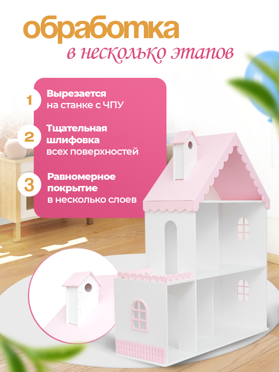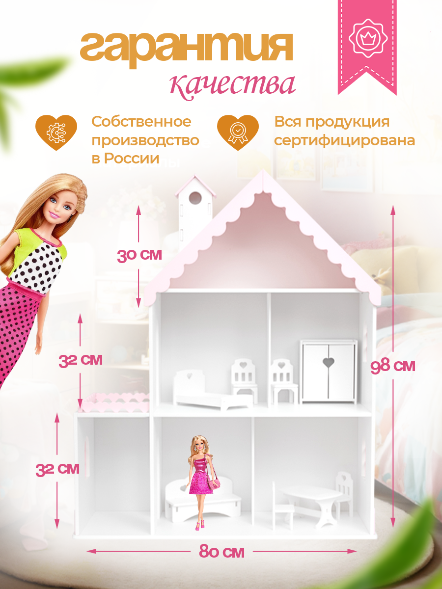 Кукольный домик деревянный Снежана для кукол до 32 см бело-розовый интересное: