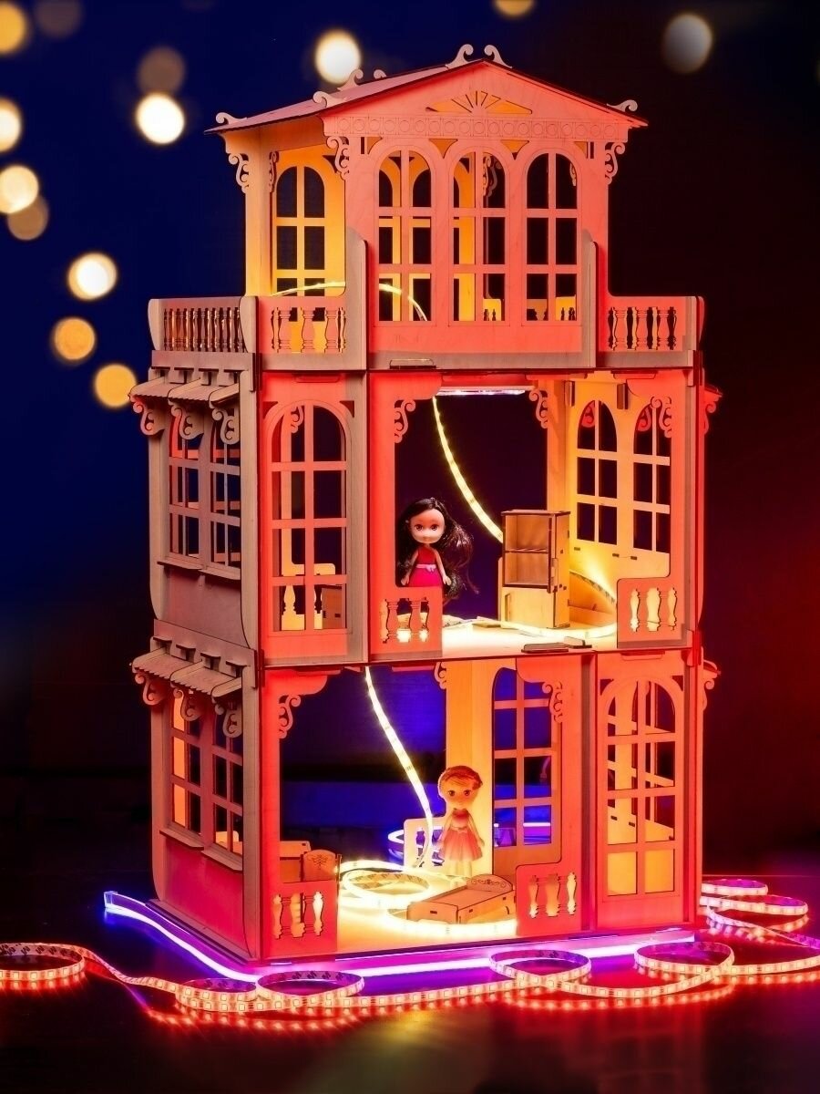 Кукольный дом 3-х этажный высотой 99 см для кукол до 30 см интересное: