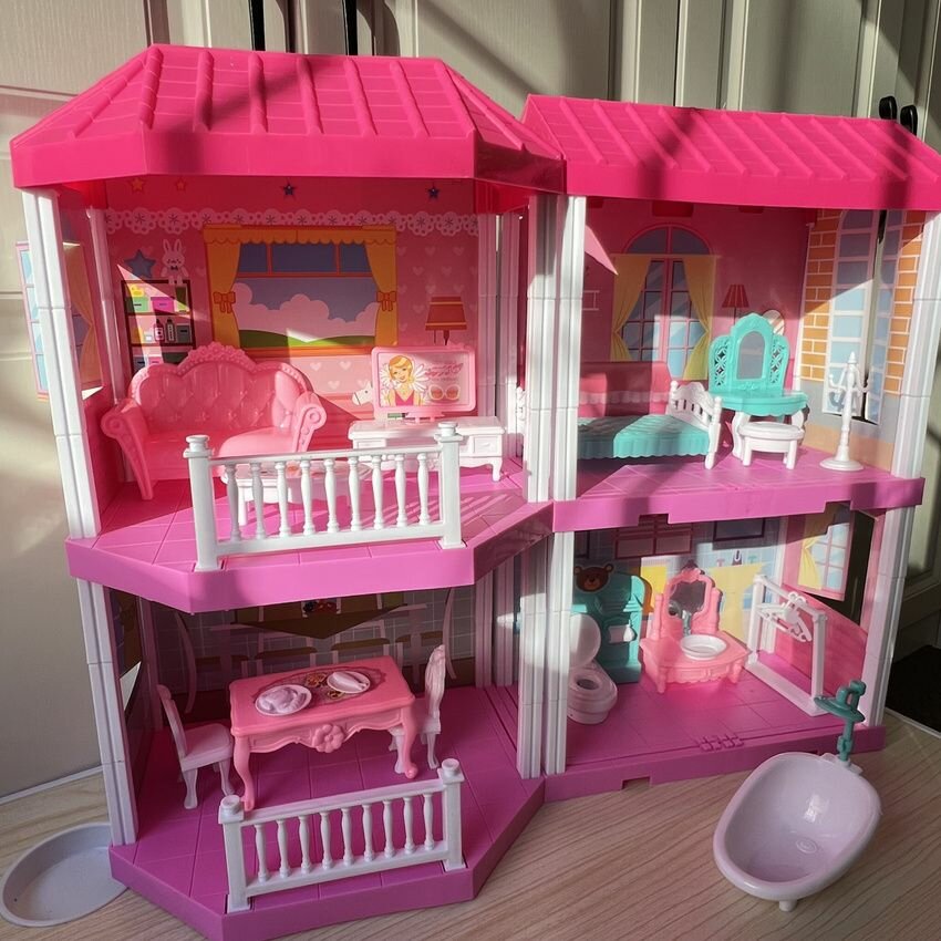 Купить Кукольный домик с мебелью, игрушечный дом для кукол состоит из 2х этажей, новогодний подарочный детский игровой набор для девочки
