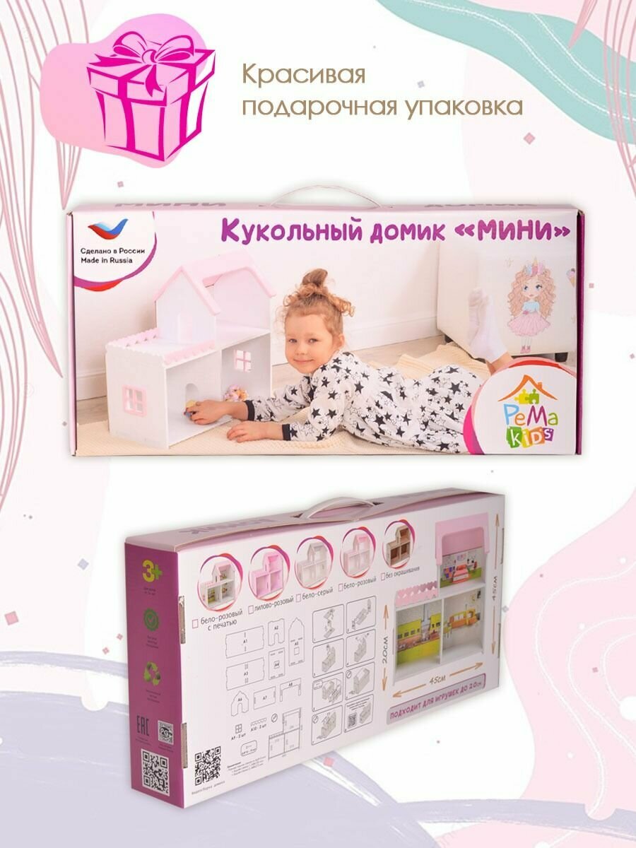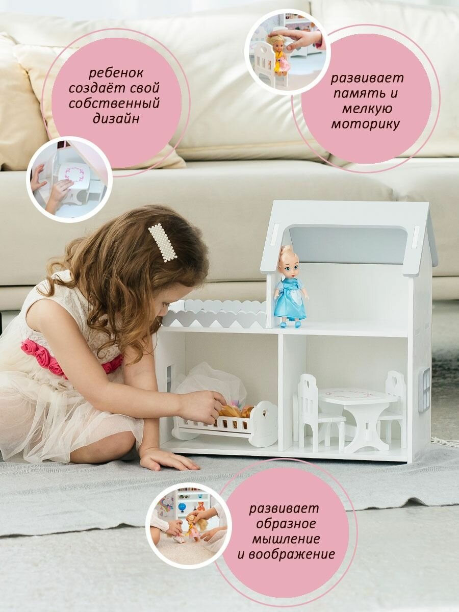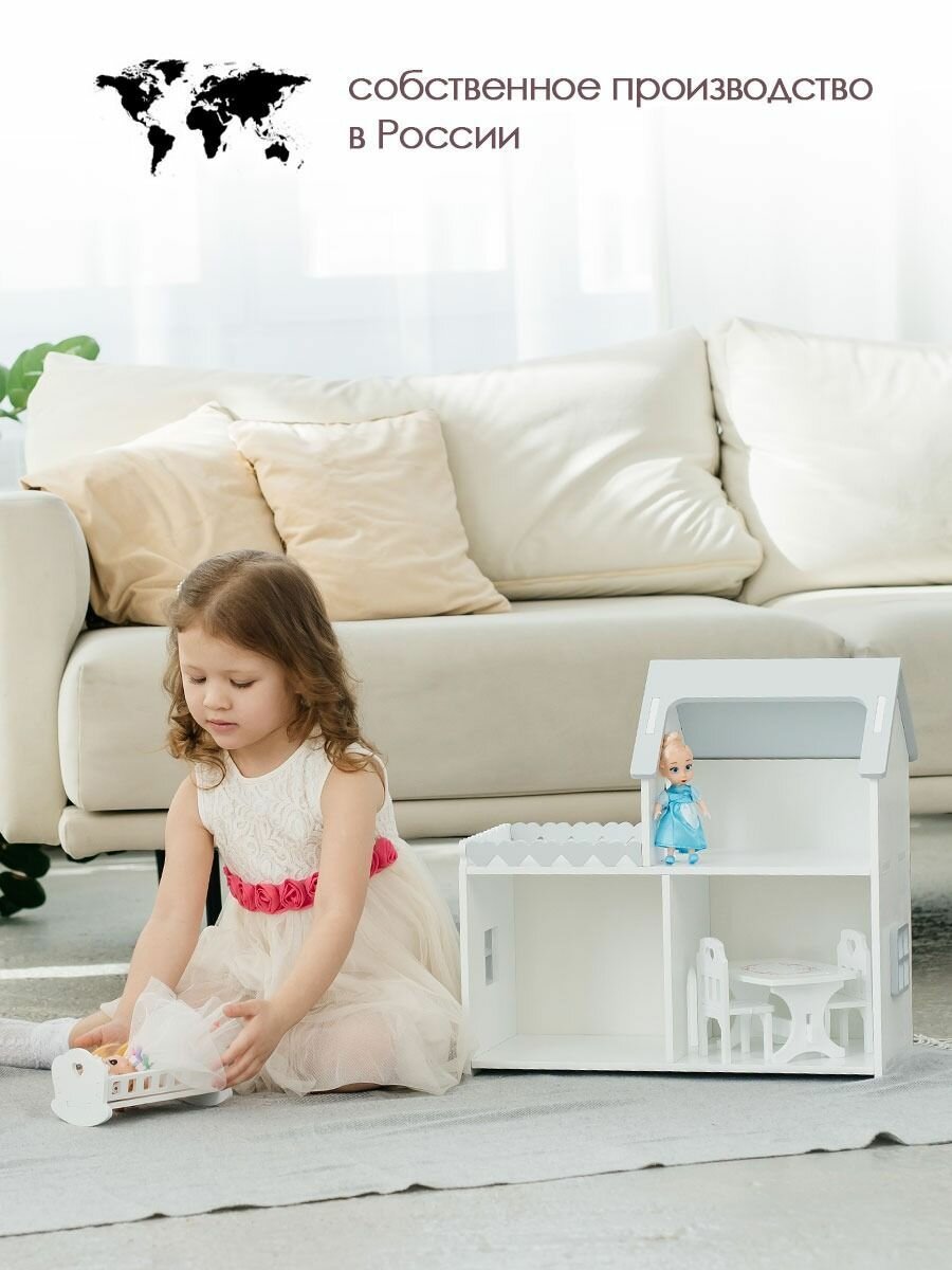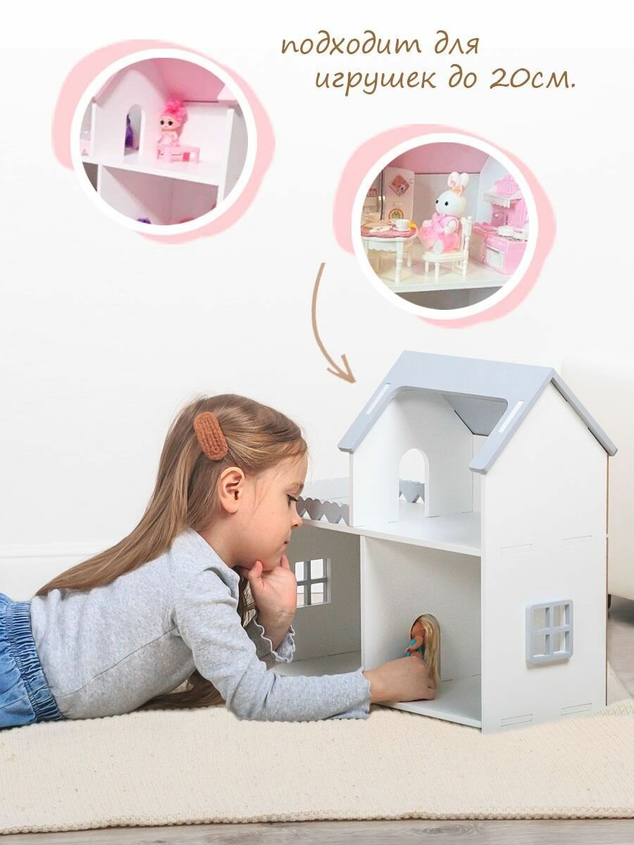 Купить Кукольный домик деревянный мини бело-серый для кукол барби до 20 см