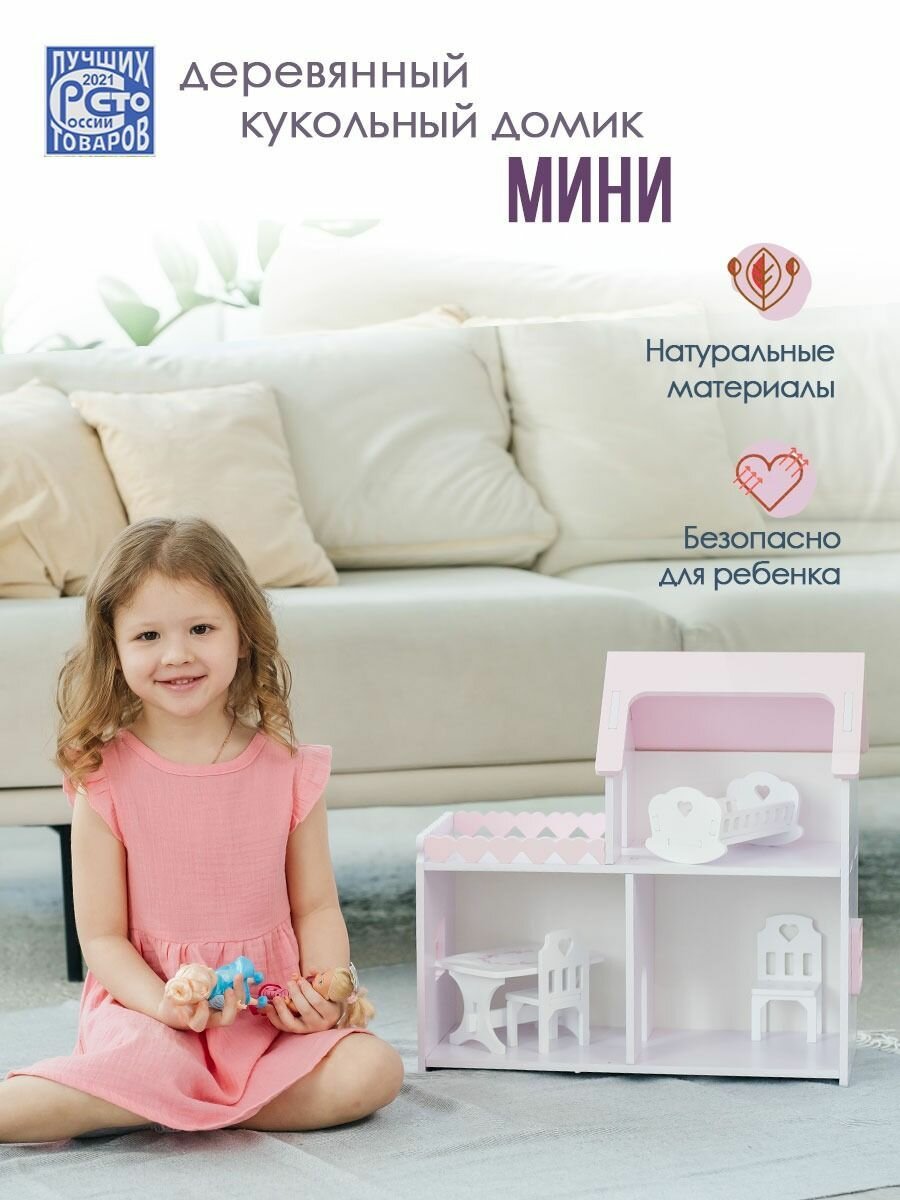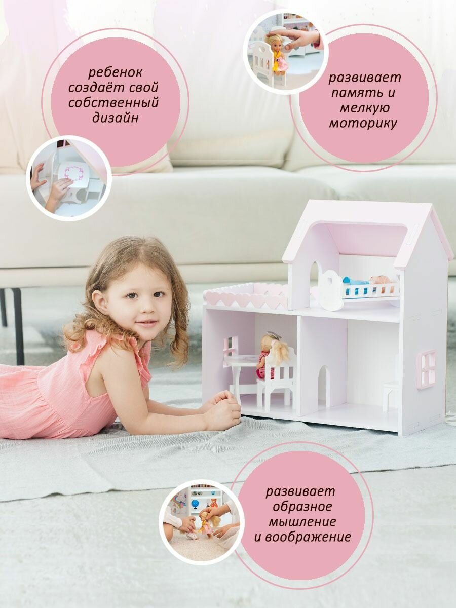 Кукольный домик деревянный мини лилово-розовый, для кукол барби до 20 см интересное: