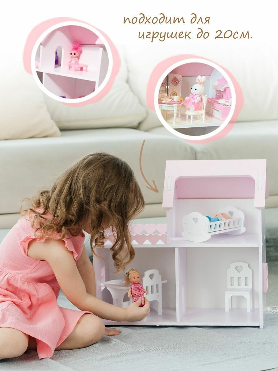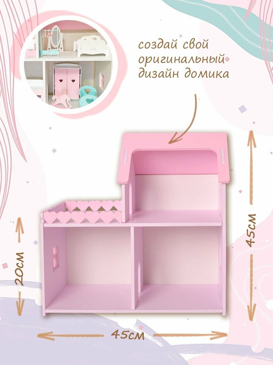 Купить Кукольный домик деревянный мини лилово-розовый, для кукол барби до 20 см