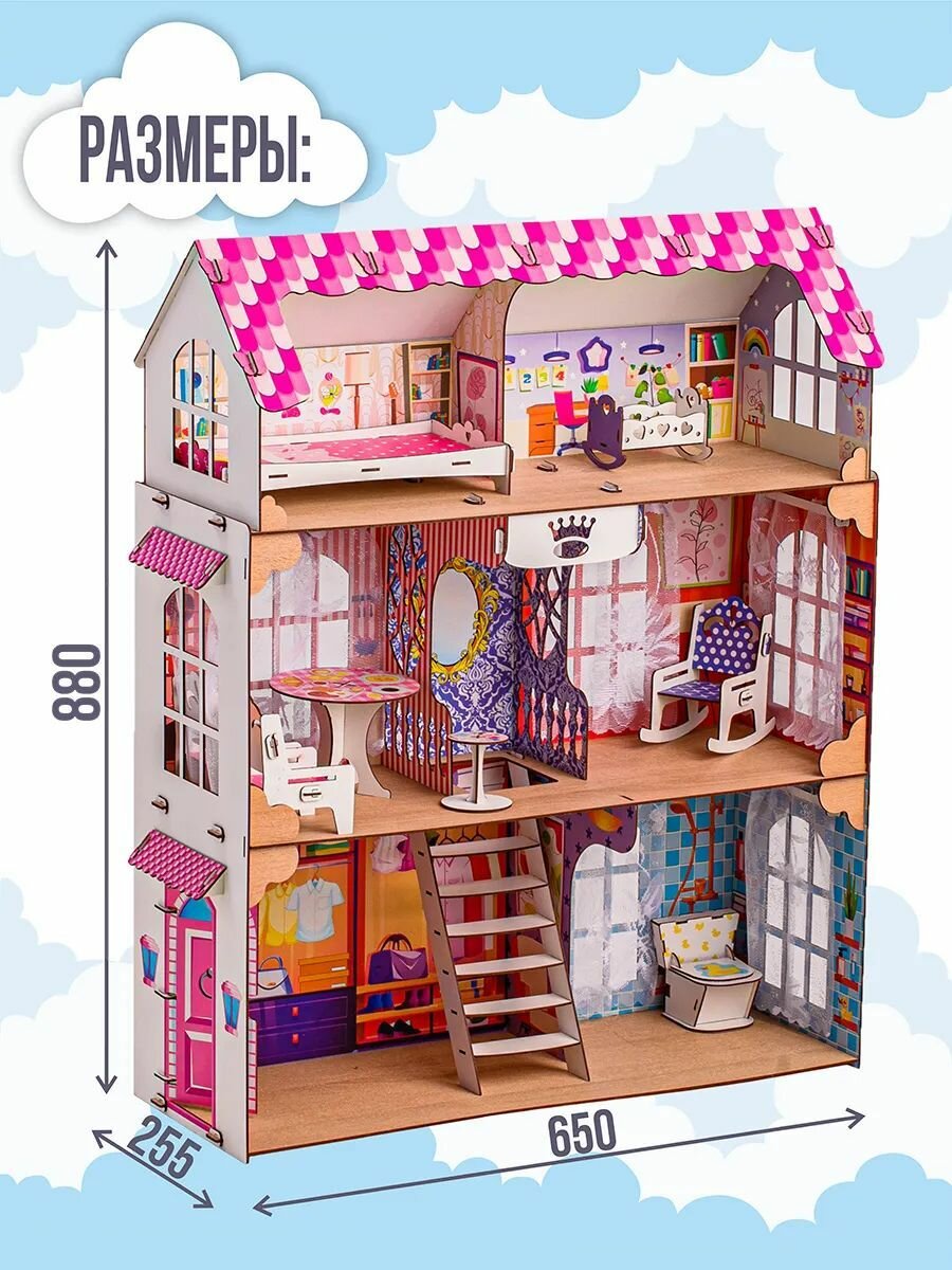 Купить Деревянный кукольный домик Барби и других мебель в комплекте