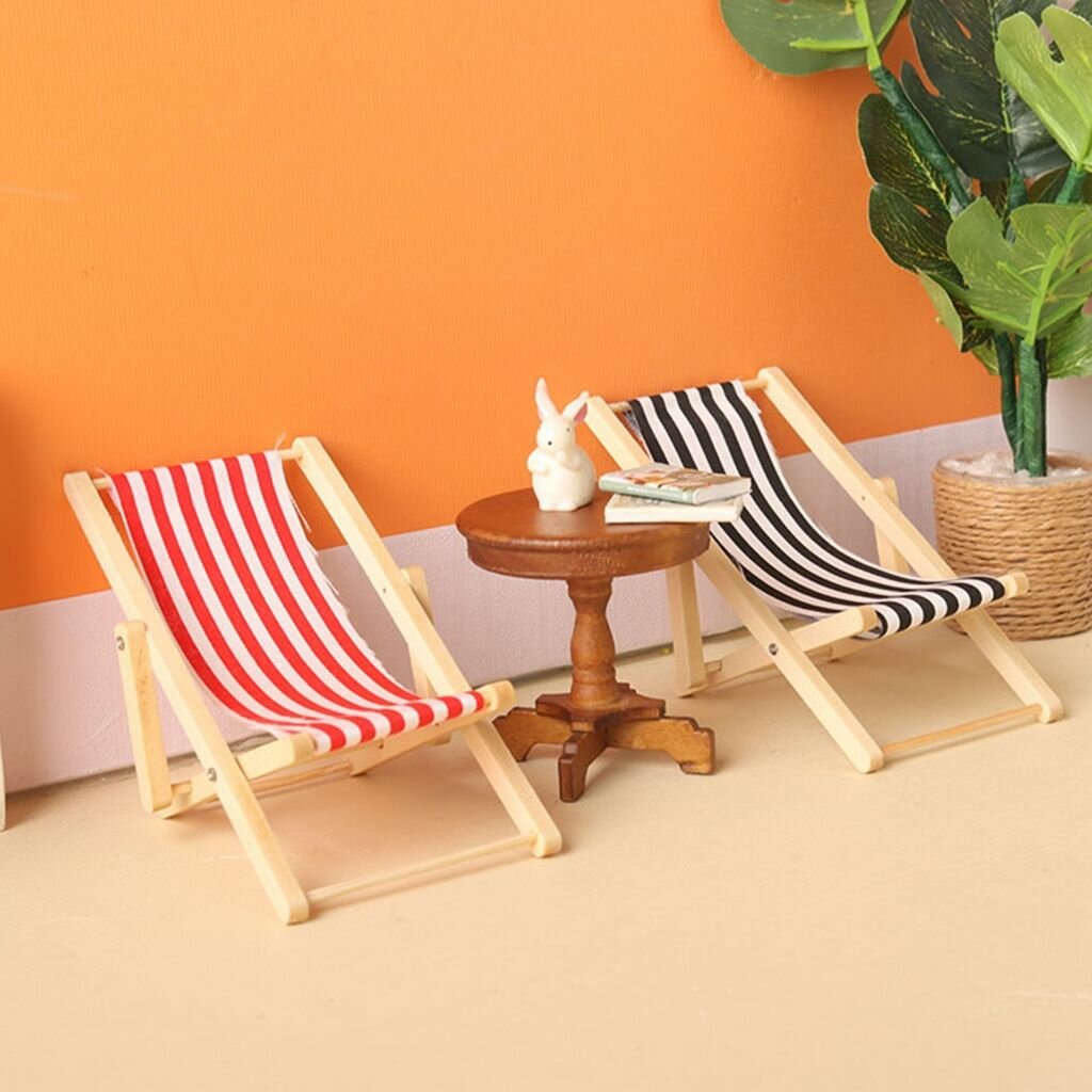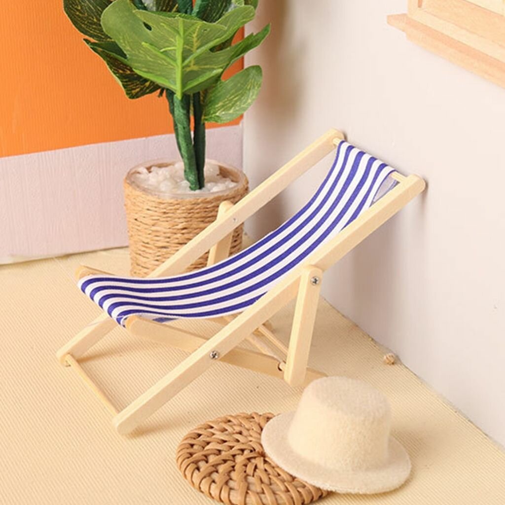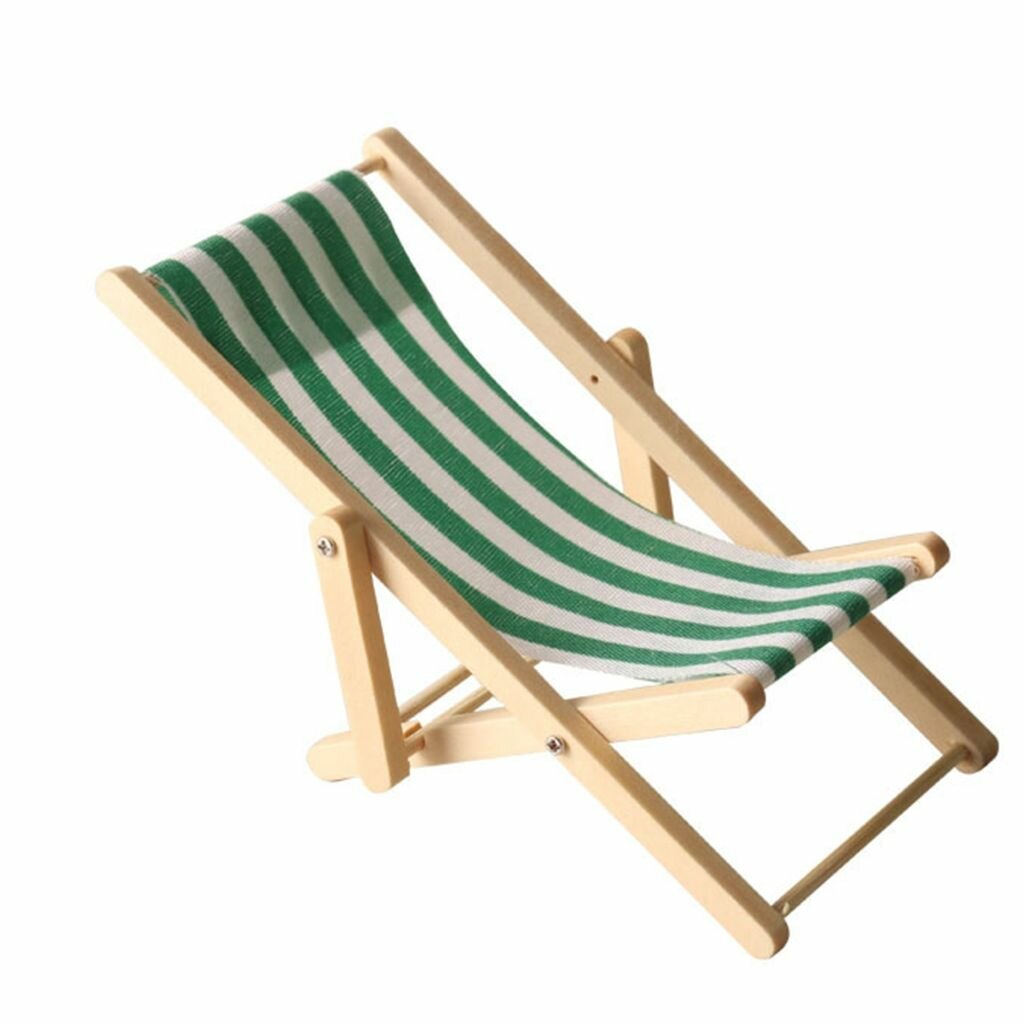 DIY 1:12 кукольный домик - модель полосатого пляжного стула - зеленый интересное: