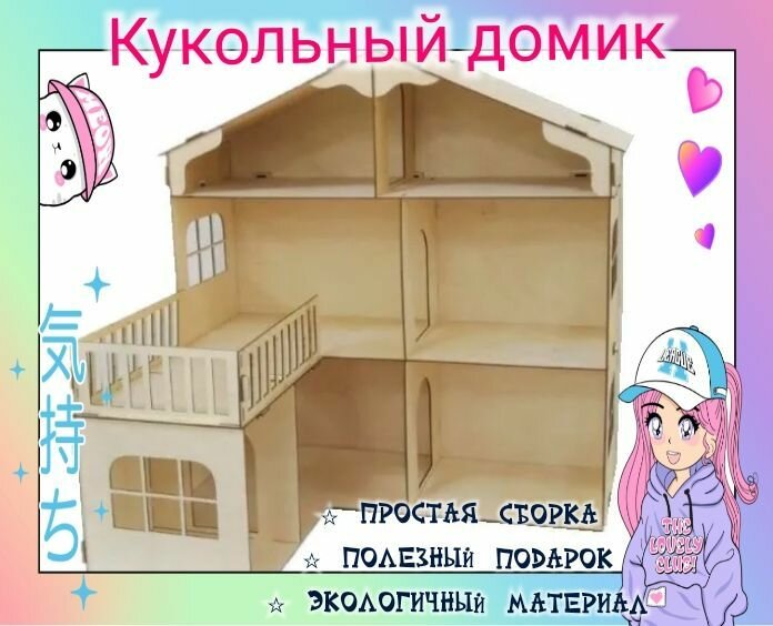 Купить Большой Кукольный домик (2 этажа, балкон) 120х84х71 см