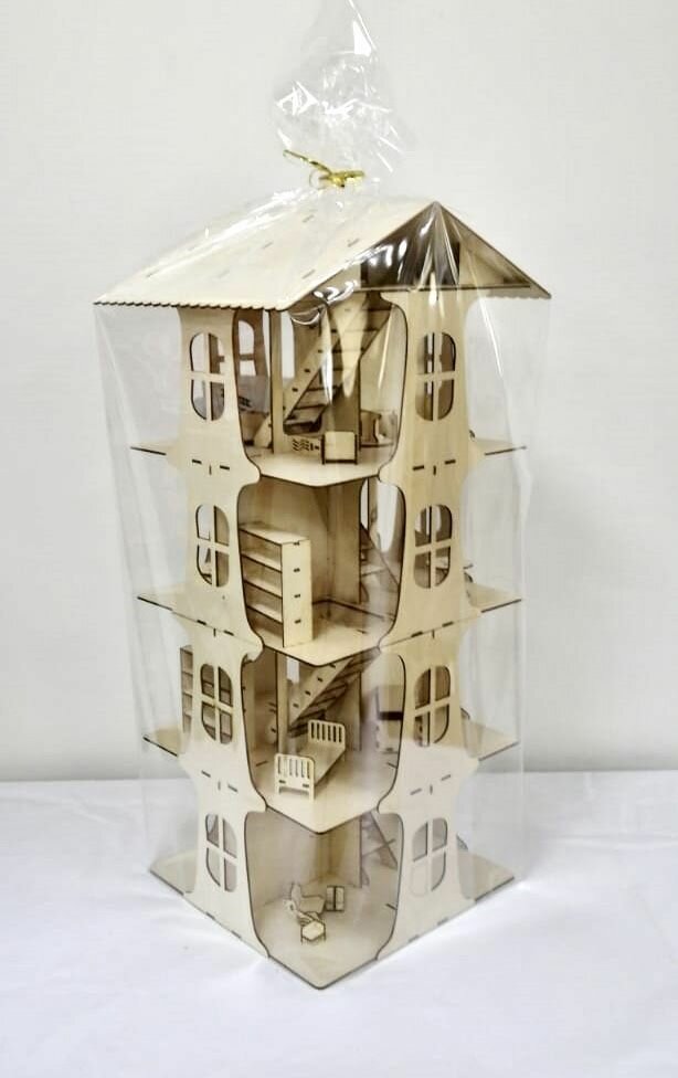 Деревянный Высотный домик - большой (4 этажа) для кукол 15-20см, ВхШхГ: 78 х 50 х 21 см