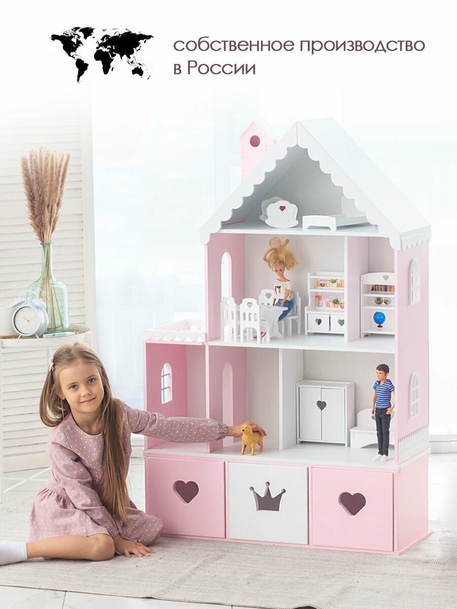 Купить Кукольный домик деревянный Стефания для кукол до 32 см розово-белый